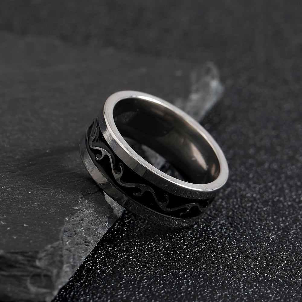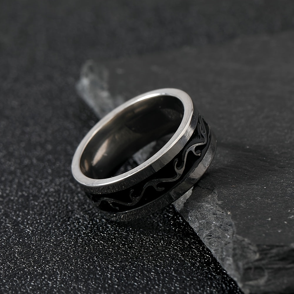 This stainless steel ring features a dragon pattern and a unique rotating design. Perfect for those who love dragon-inspired jewelry.