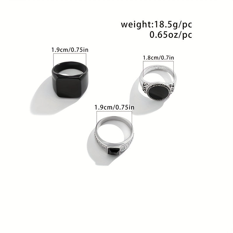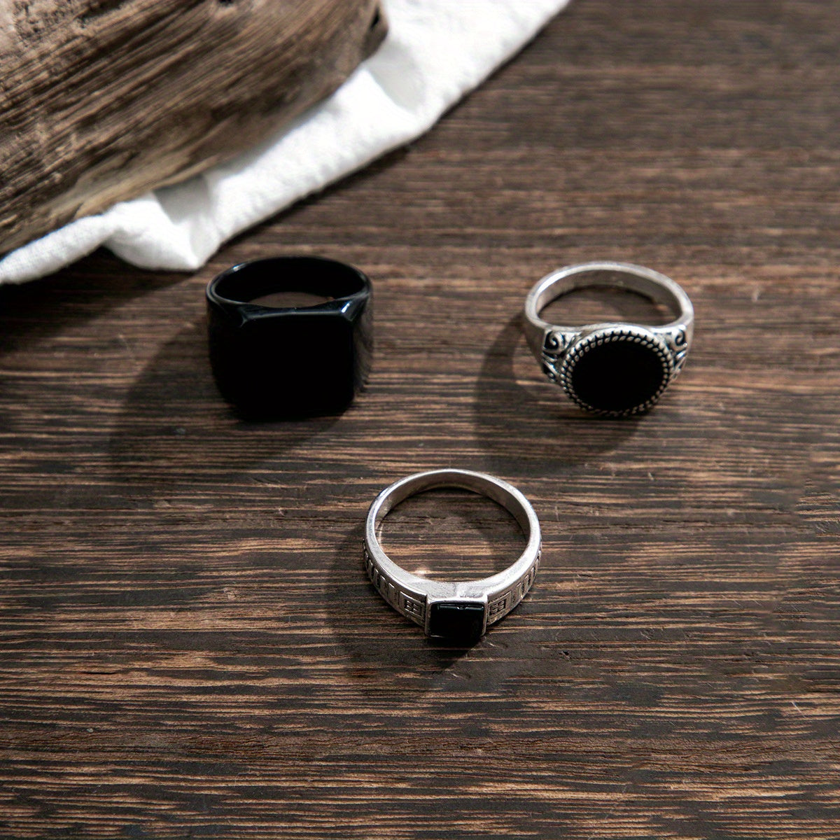 Enhance your style with this 3pcs set of men's gemstone rings. These vintage stackable rings are perfect for adding a touch of sophistication to your look.