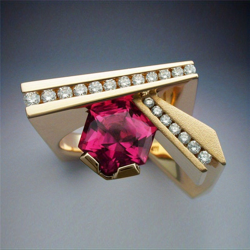 This men's ring features a geometric design with a stunning ruby gemstone. Perfect for daily wear or parties, this ring adds a touch of style to any outfit.