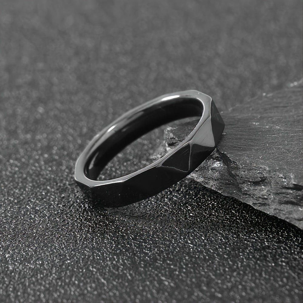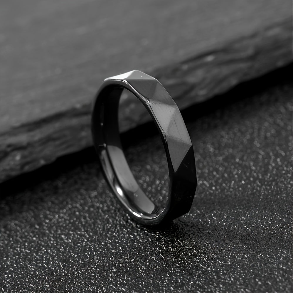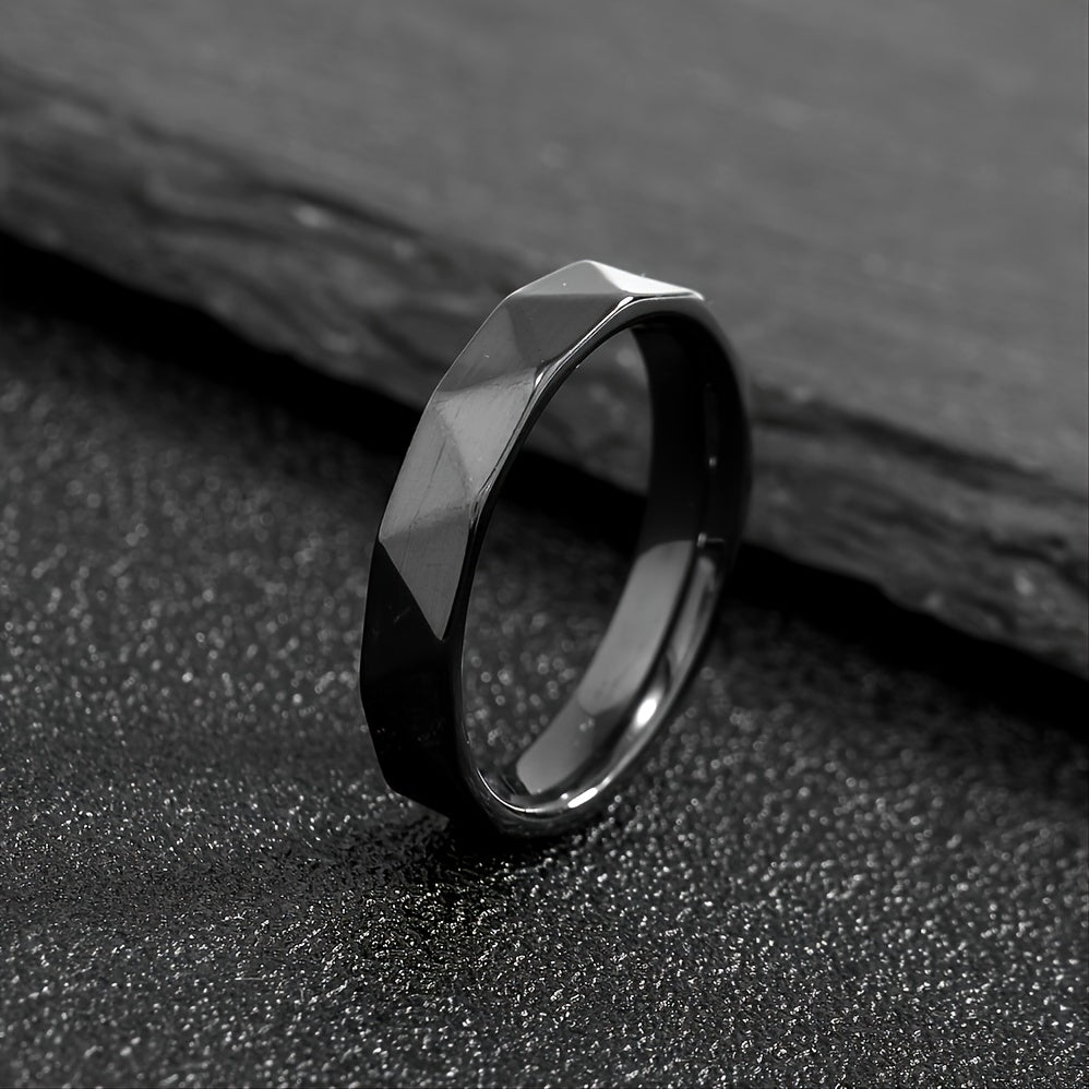 This faceted geometric ring is a stylish accessory for men. Made of high-quality stainless steel, it features a unique design that adds a modern touch to any outfit.