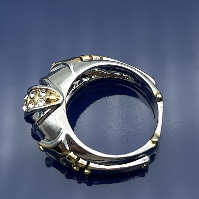 Enhance your style with this elegant men's ring featuring a golden fish mouth design. Crafted from high-quality alloy with artificial diamond accents.