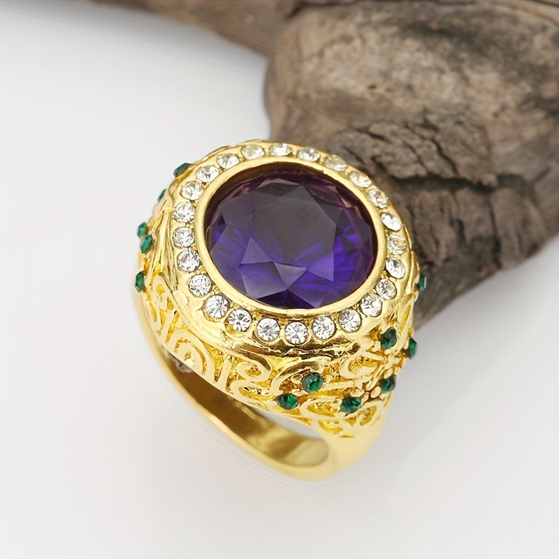 Add a touch of elegance to your look with this round purple zircon ring. Perfect for weddings, engagements, and parties.