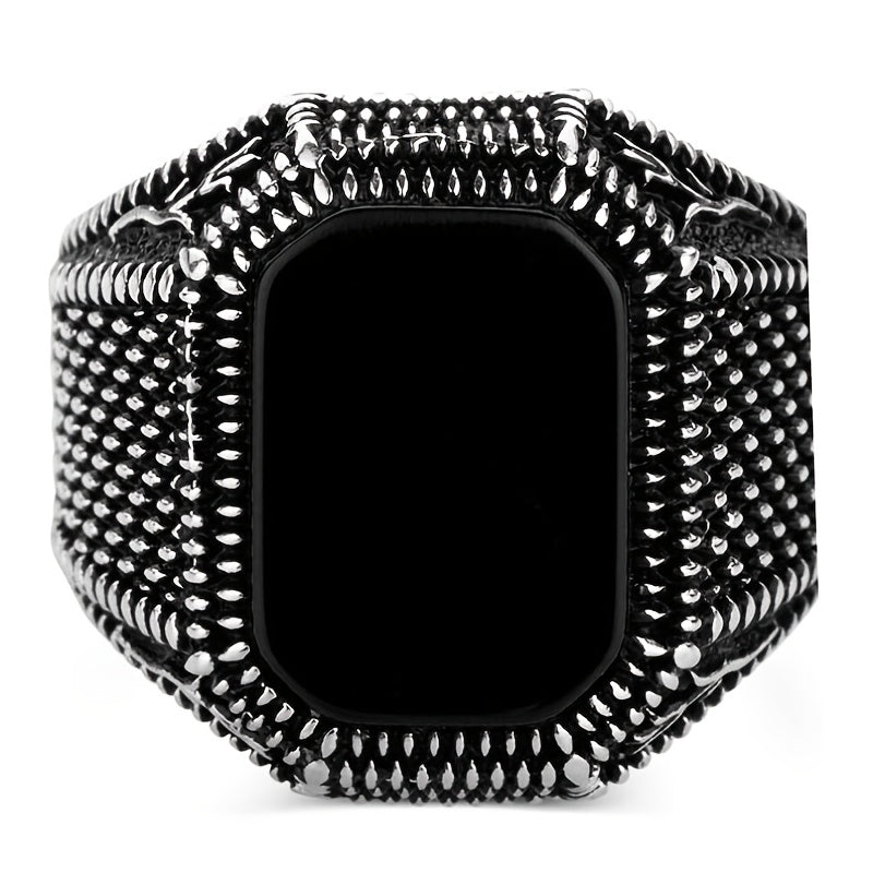 Vintage-inspired men's ring with metal inlays and faux gems. A fashionable and generous accessory for special occasions.