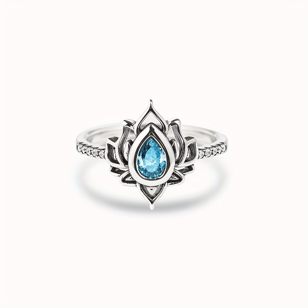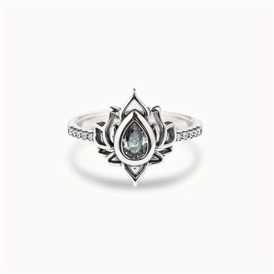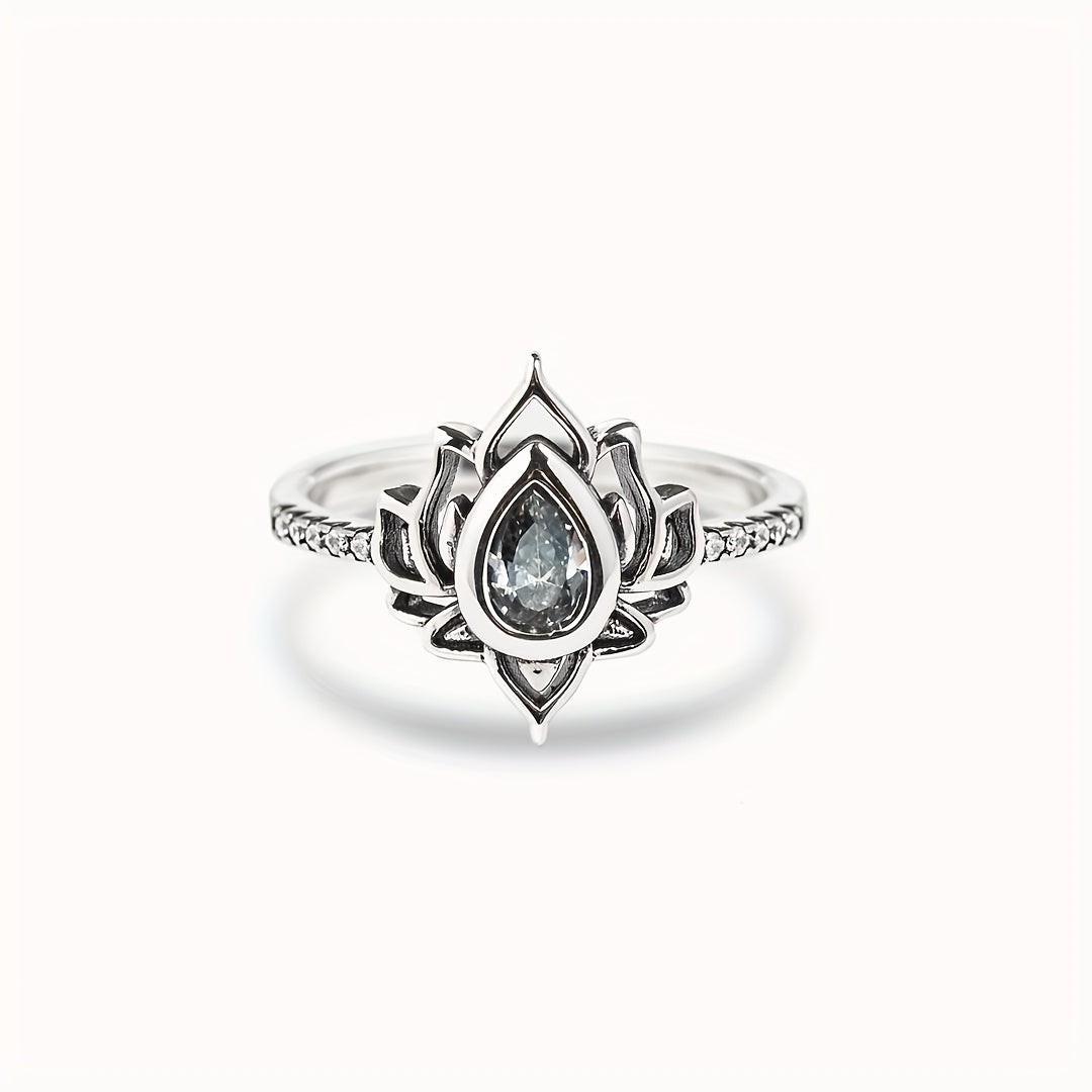 This stylish ring features a retro lotus design with a water drop flower and micro inlaid zircon, suitable for both men and women.