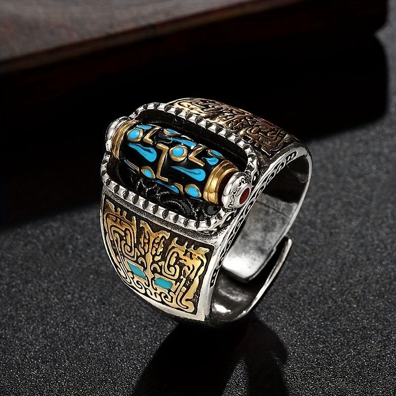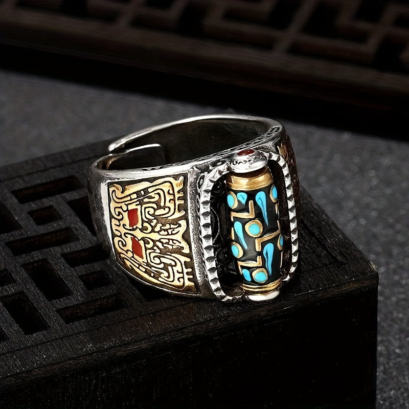 This adjustable ring features a unique design with rotating beads, giving it a retro and hip hop style. It is perfect for men who want to make a bold fashion statement.