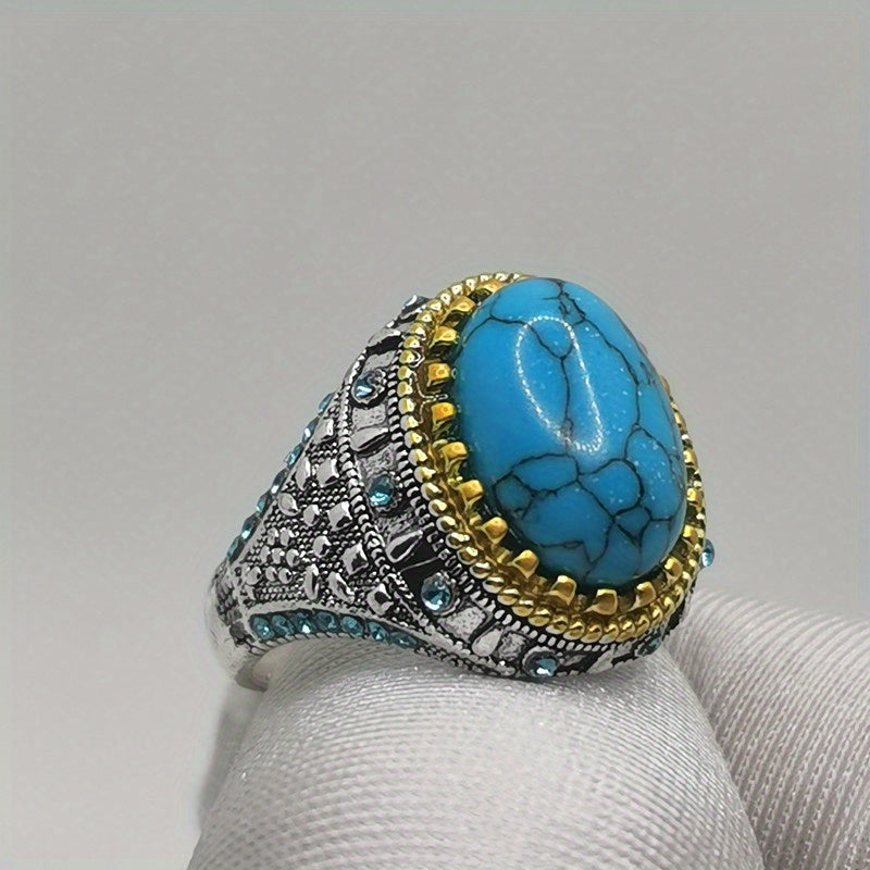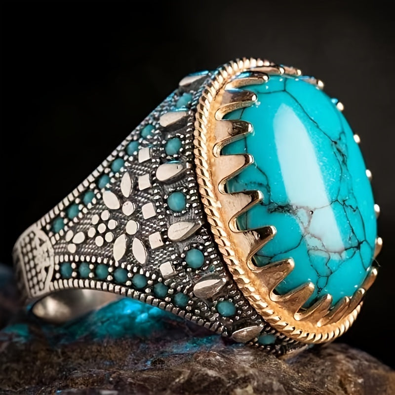 Add a touch of vintage charm to your style with this artificial oval turquoise ring for men.