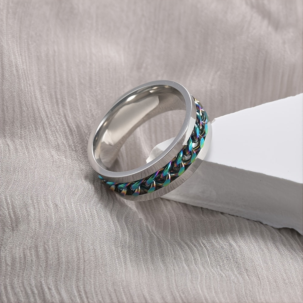 This men's ring features a unique rotatable design, made from durable titanium for a stylish and modern look.