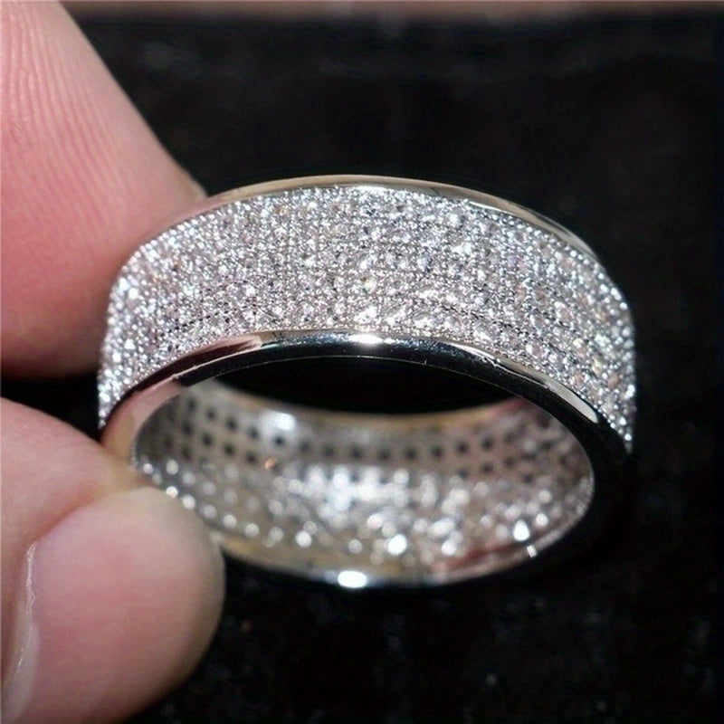 Elegant ring for men featuring a round inlaid zircon stone set in silver and golden tones.