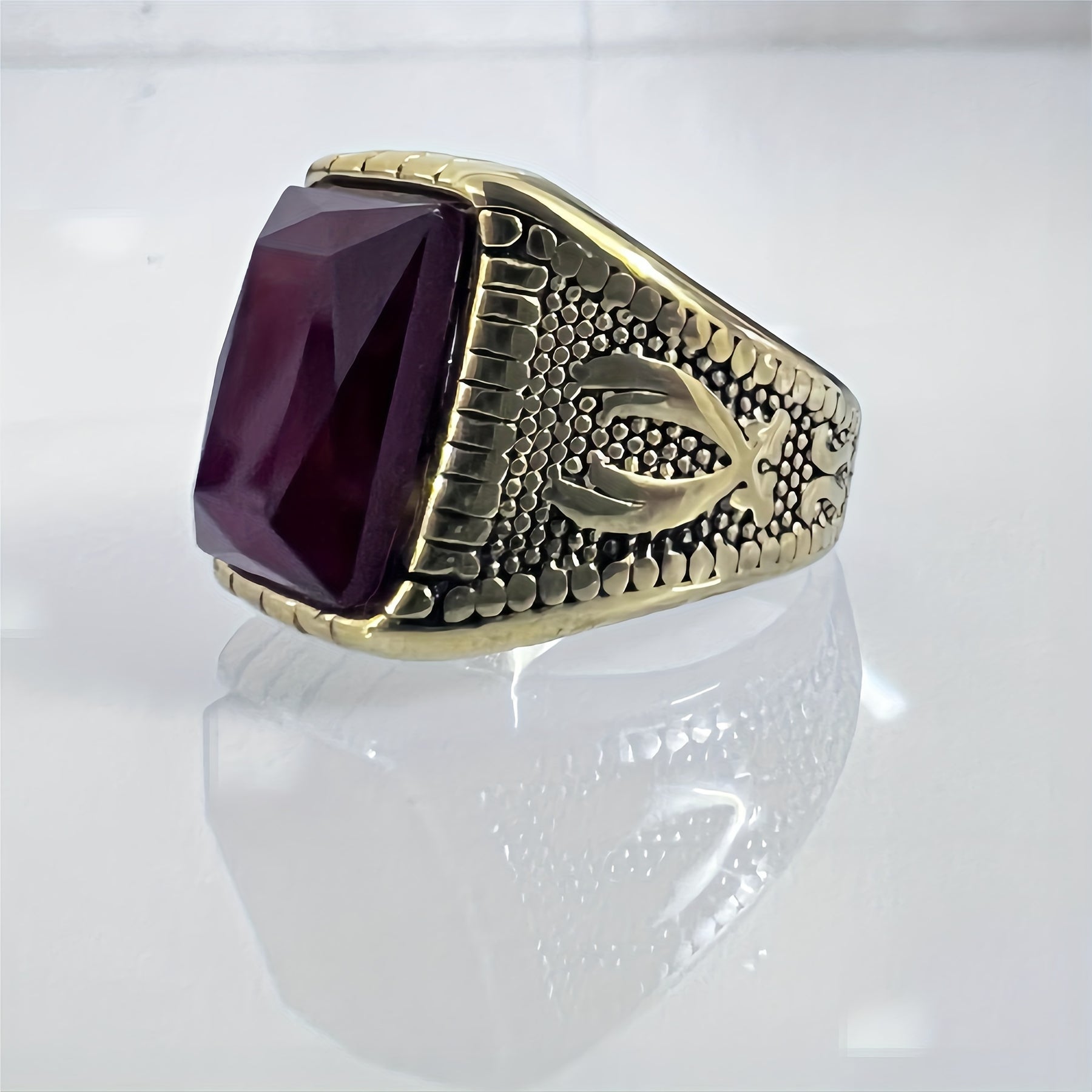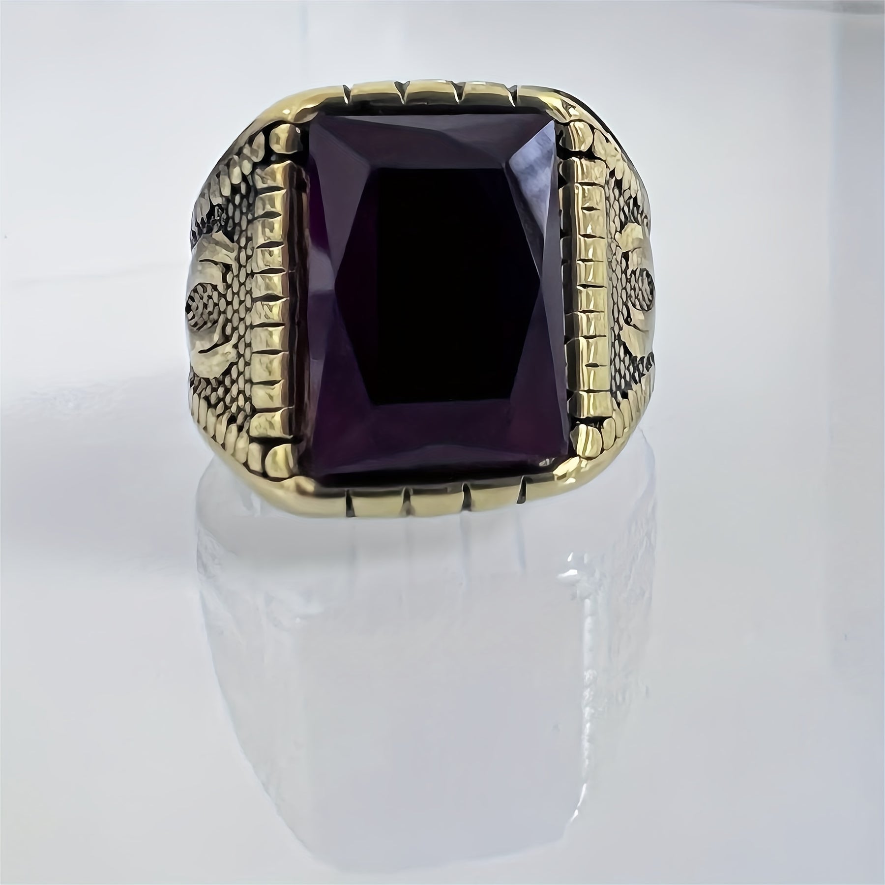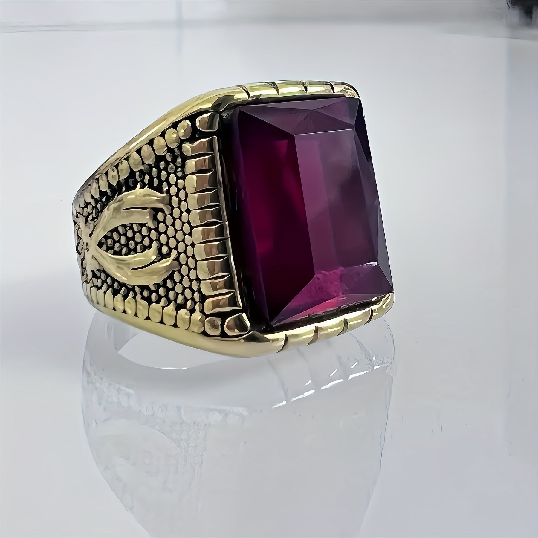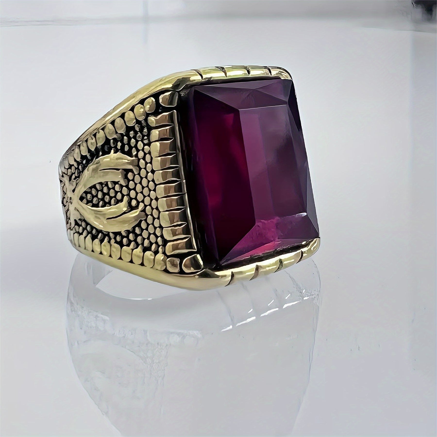 Add a touch of retro punk hip hop style to your look with this square glass gem ring for men. Stand out with this unique accessory.