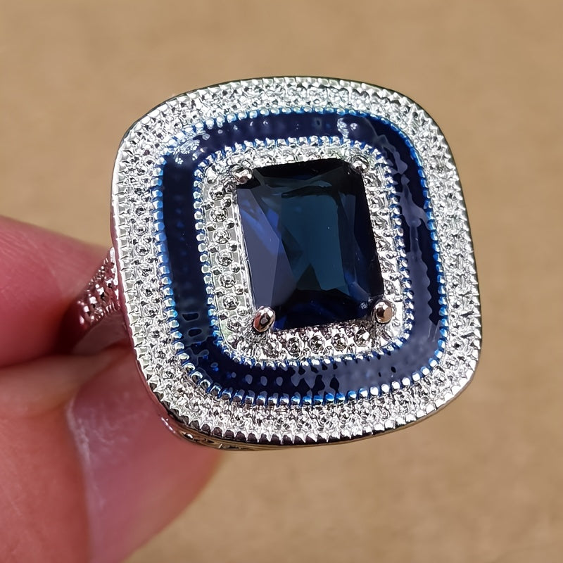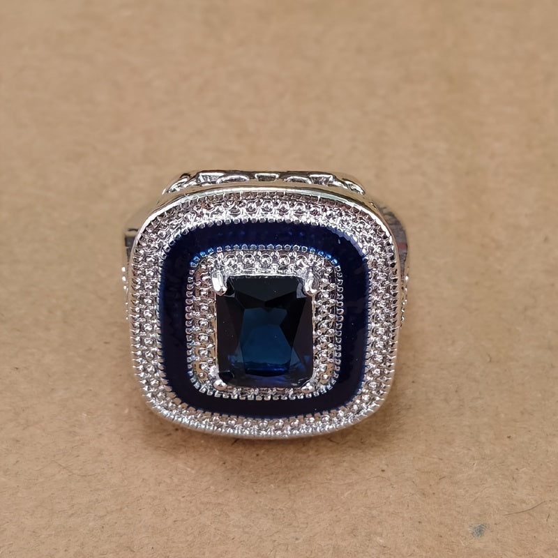 This men's ring features a square royal zircon on a wide face design, adding a touch of elegance to your look.
