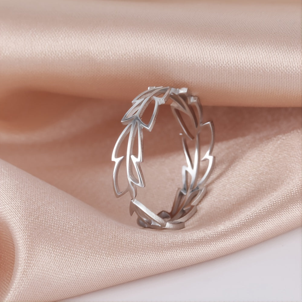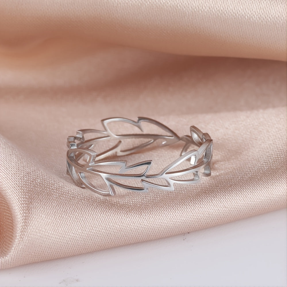 This stylish ring features a cutout leaf design on durable stainless steel. Perfect for everyday wear or special occasions.