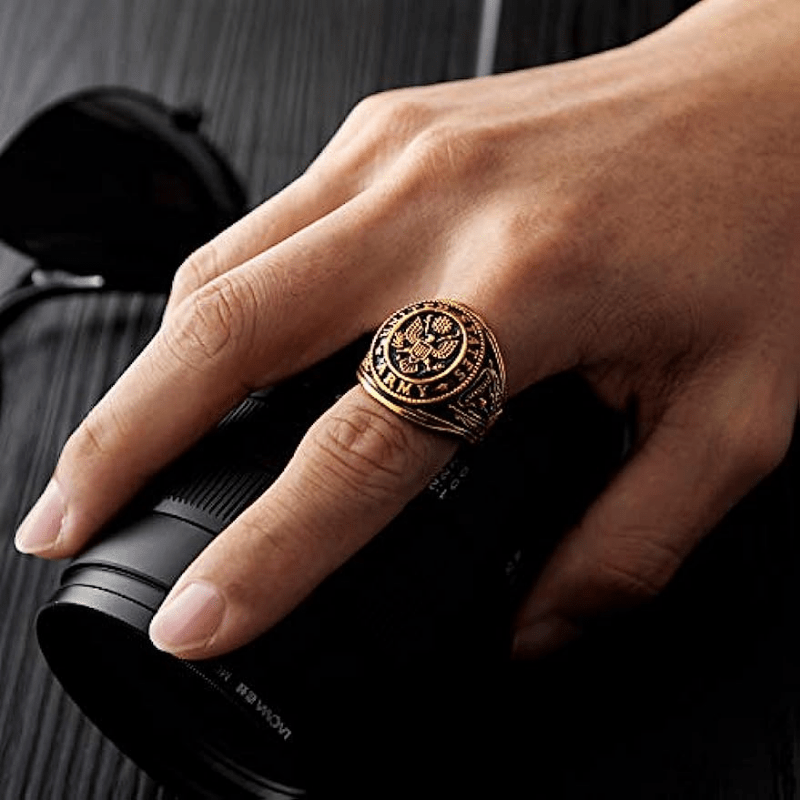 This vintage ring for men features a domineering design crafted from durable stainless steel.