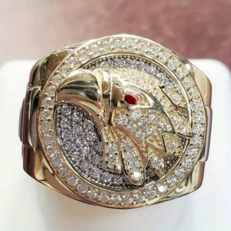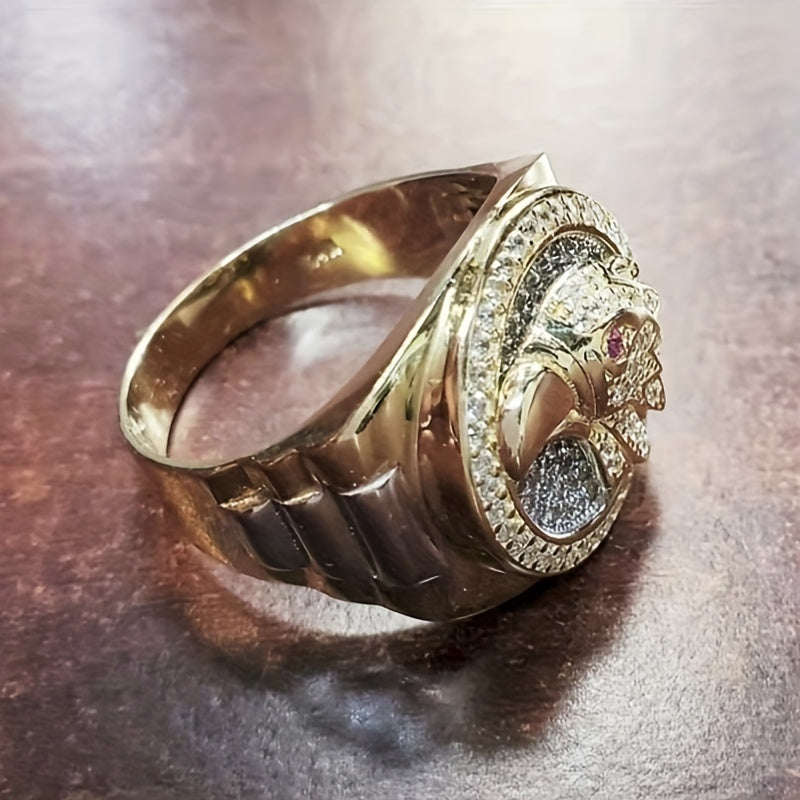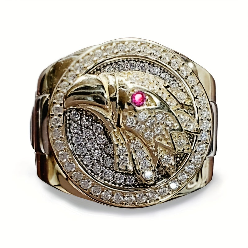 This stylish men's ring features a totem eagle design with inlaid zircon, perfect for motorcycle riding and hip hop parties.
