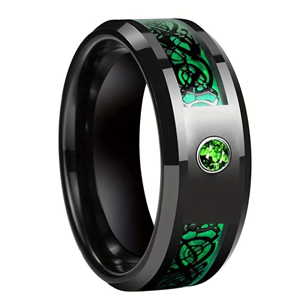 Add a touch of mystique with this men's ring featuring a dragon pattern design and zircon accents. Crafted in two-tone stainless steel, it's a bold accessory for any occasion.