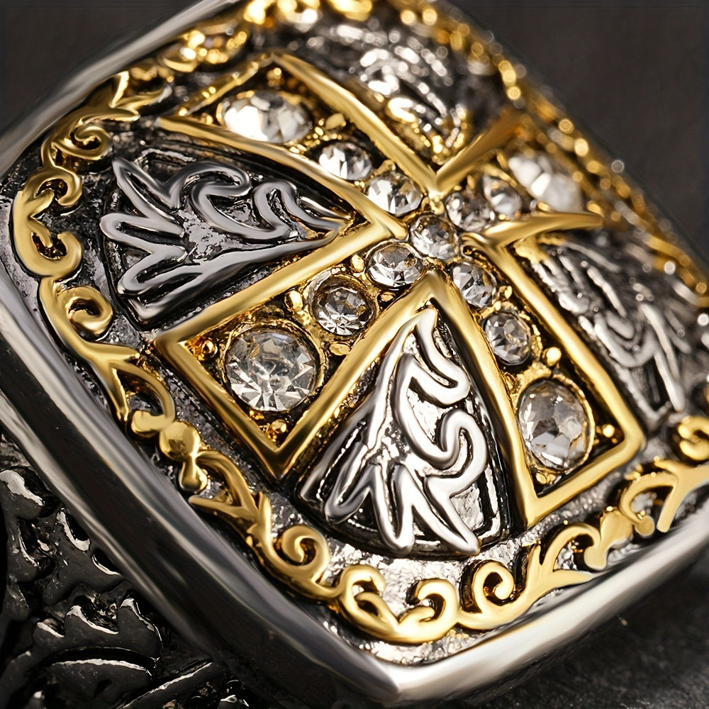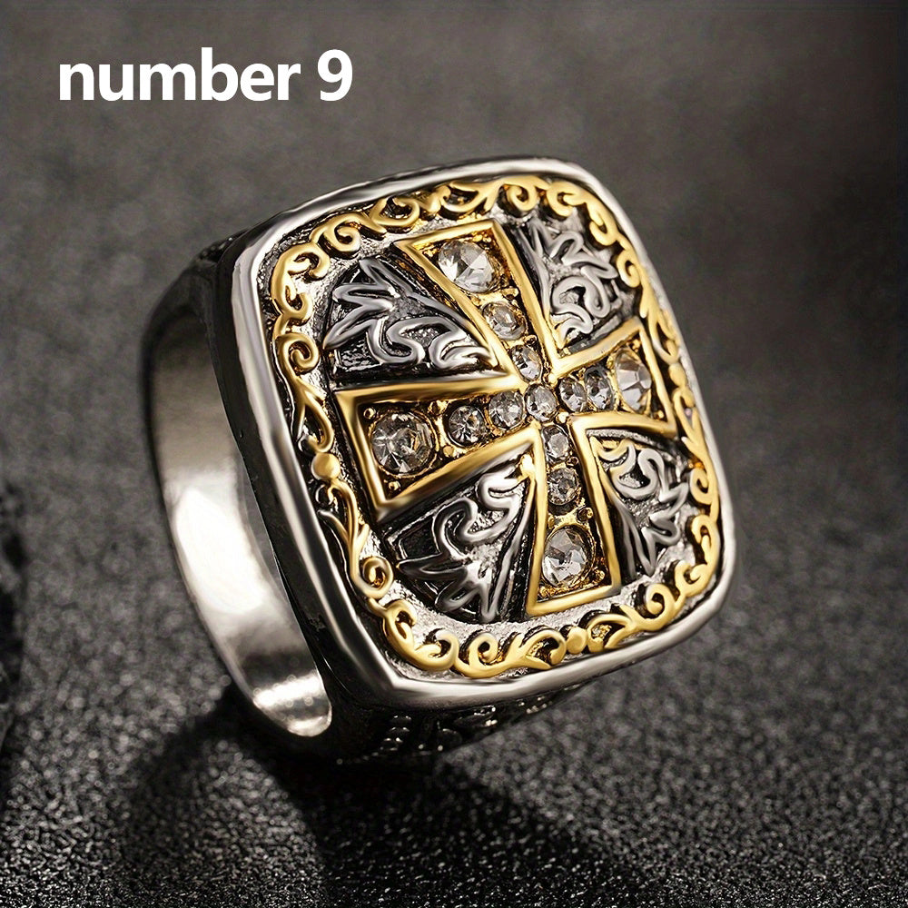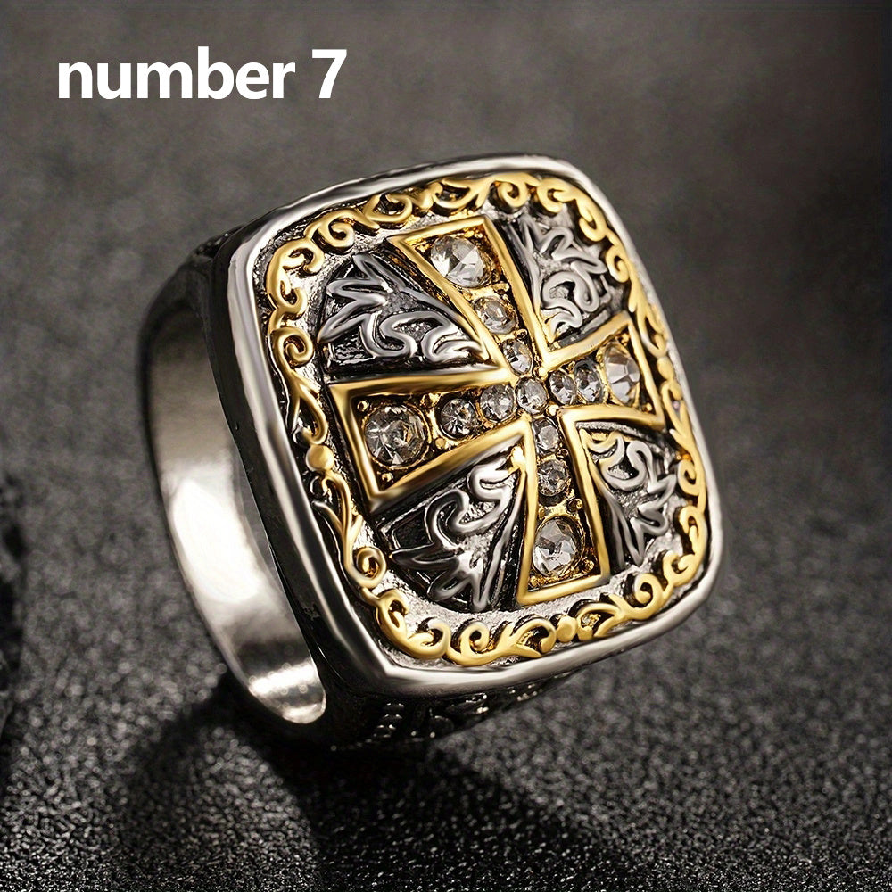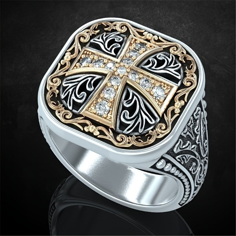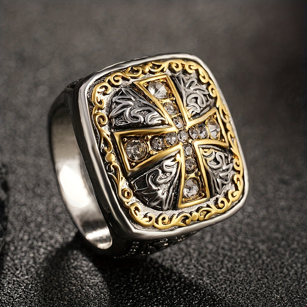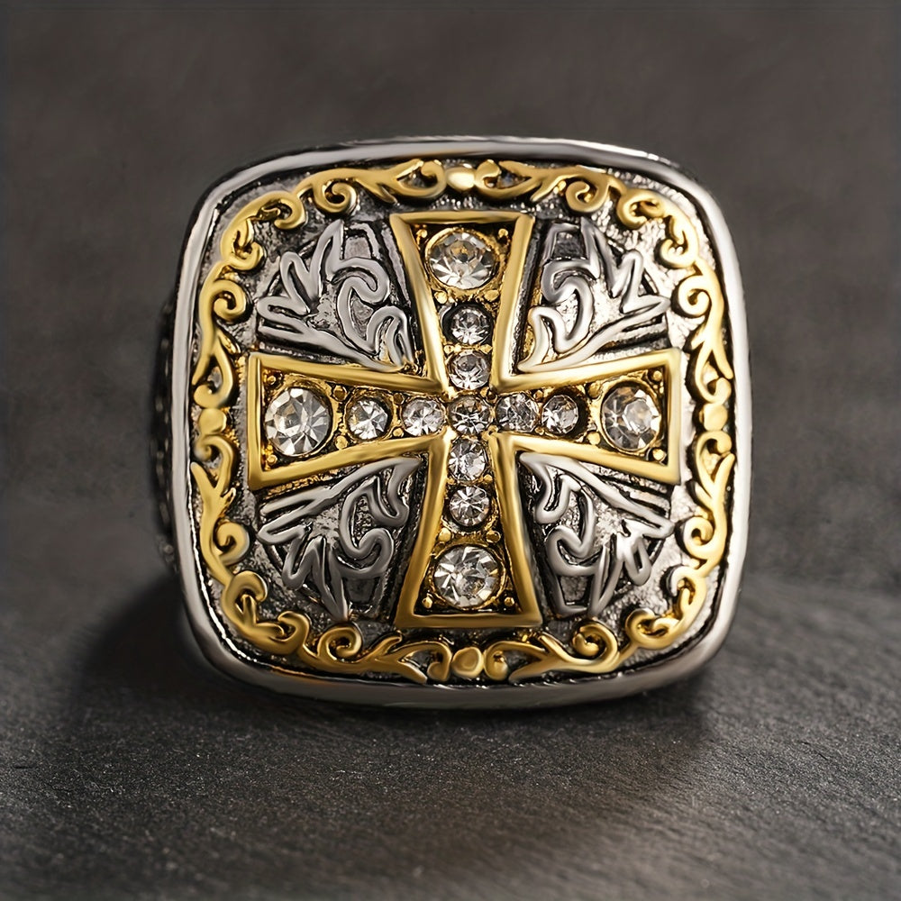Add a touch of vintage charm to your style with this stylish cross ring embellished with rhinestones.