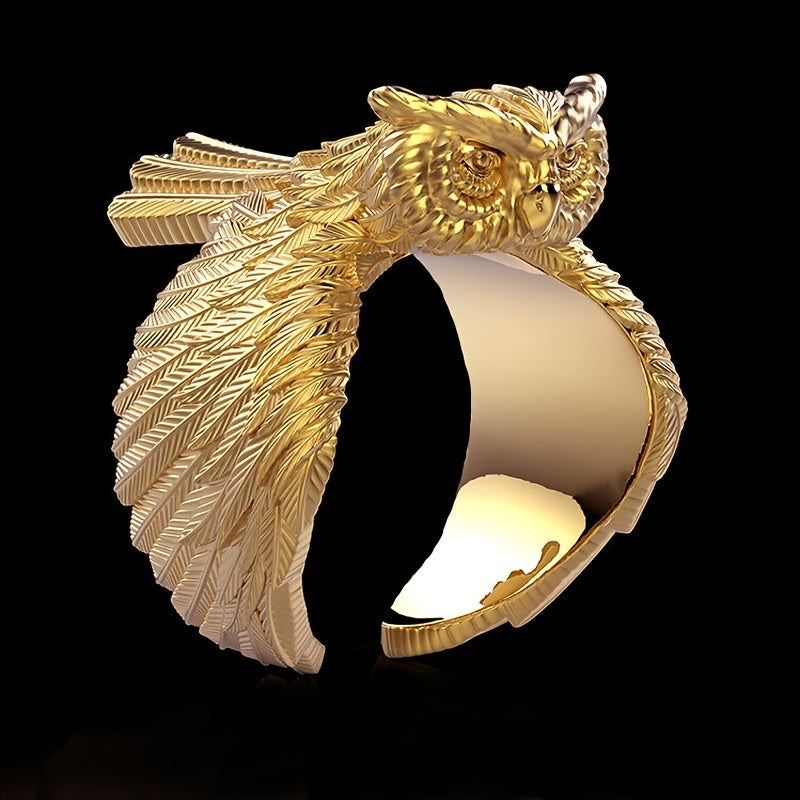 This men's vintage owl ring features intricate design and is crafted in silver tone. A unique accessory for any outfit.