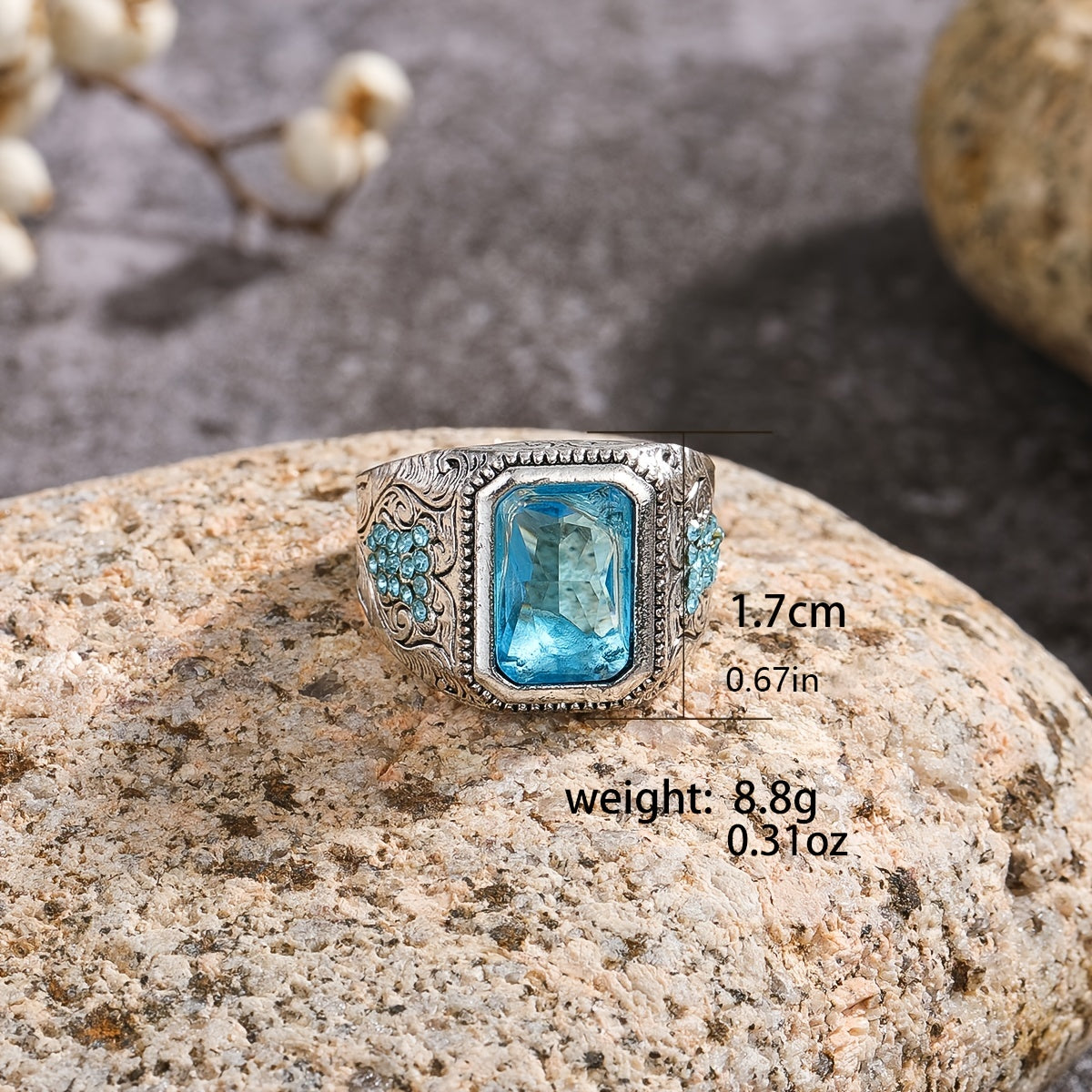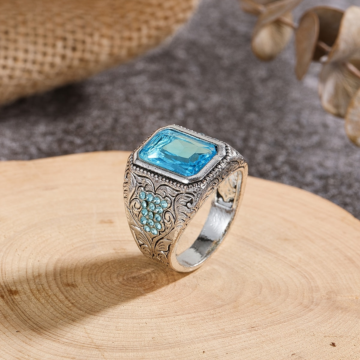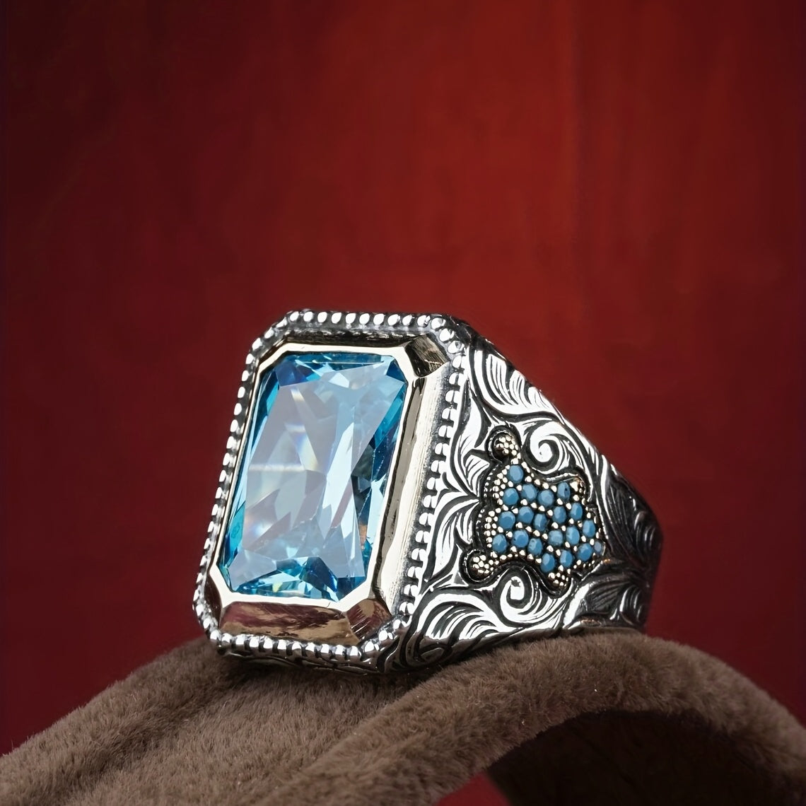 This men's ring features a vintage design with a turquoise stone set in durable stainless steel.