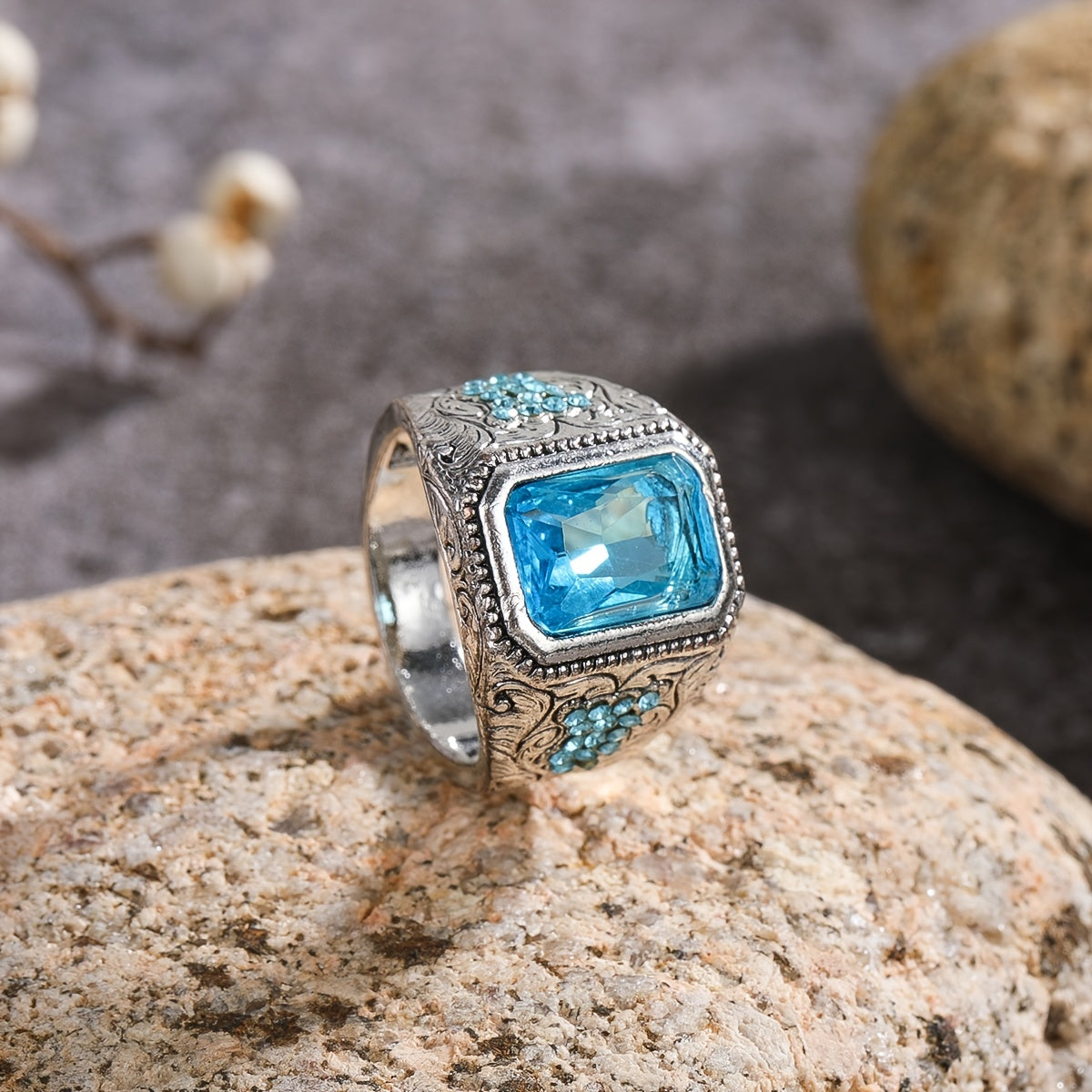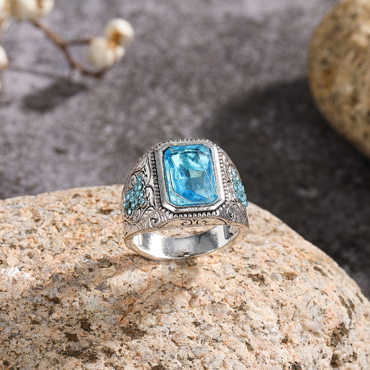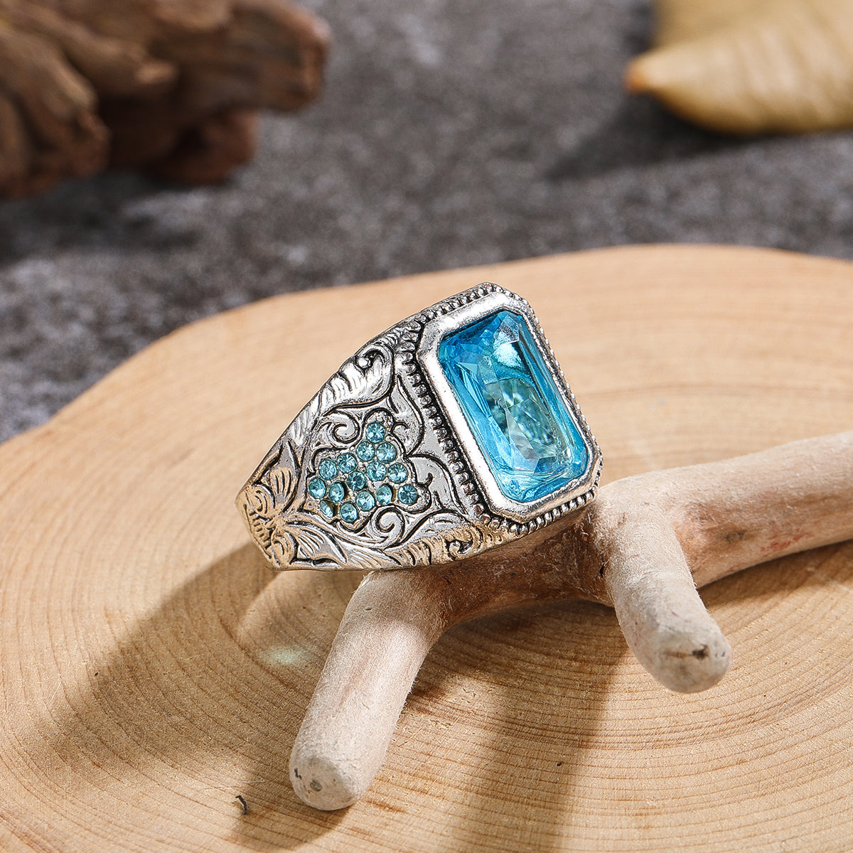 This men's ring features a vintage design with a turquoise stone set in durable stainless steel.