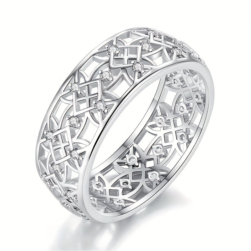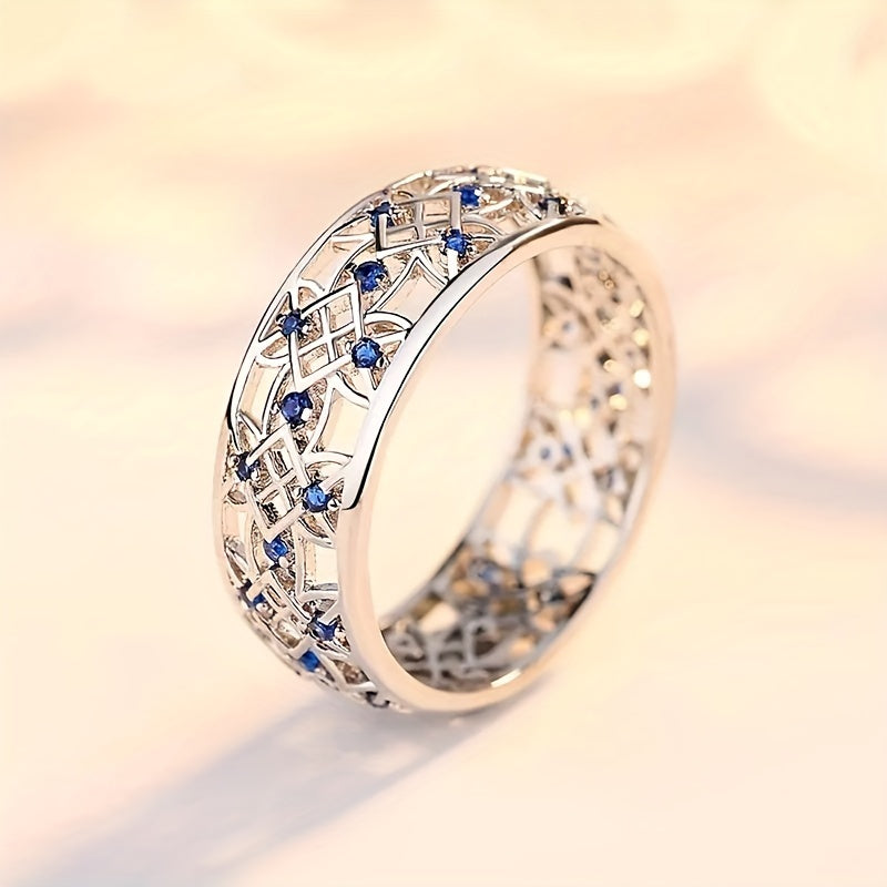 Stylish and elegant zircon hollow flower ring for couples. Perfect gift for him and her.