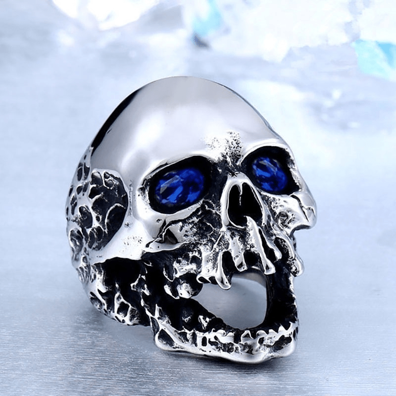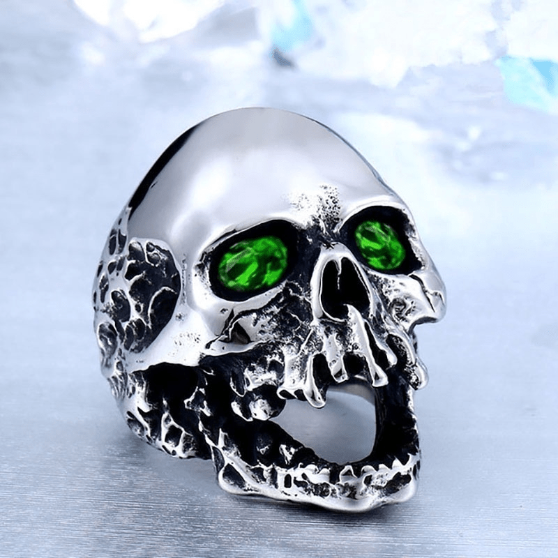 This men's ring features a skull design with inlaid zircon for a bold and edgy look.