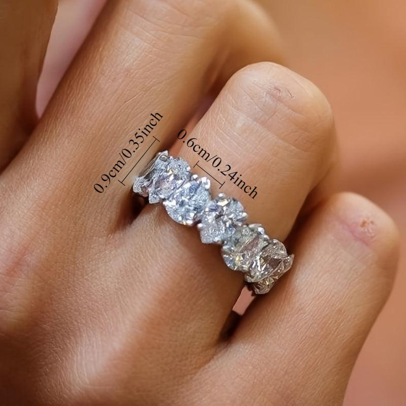This stunning bridal wedding band ring features micro pave cubic zirconia stones and pear-shaped synthetic gemstones for an elegant and timeless look. The ring is golden plated for a luxurious finish.