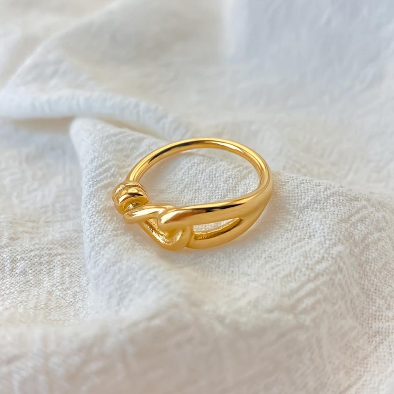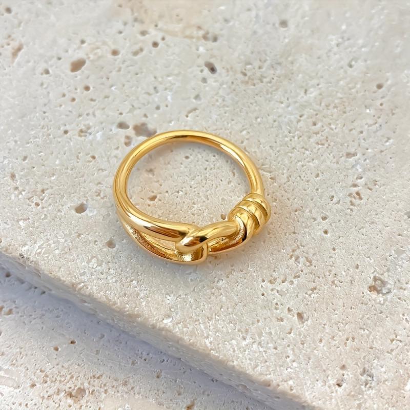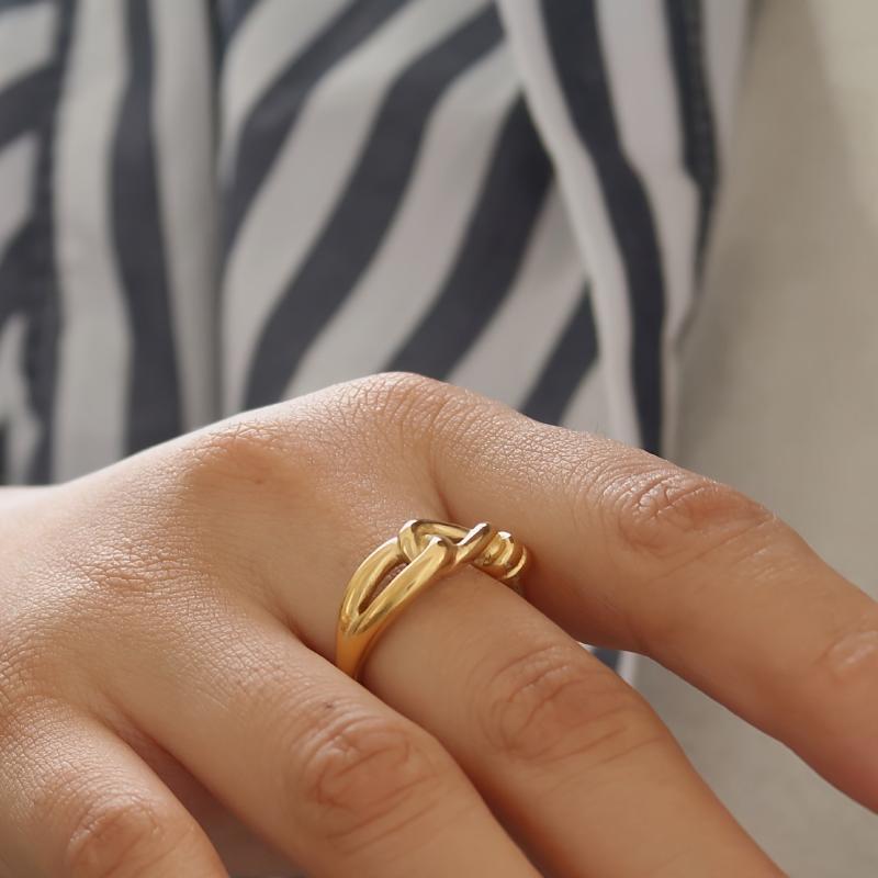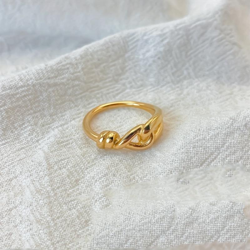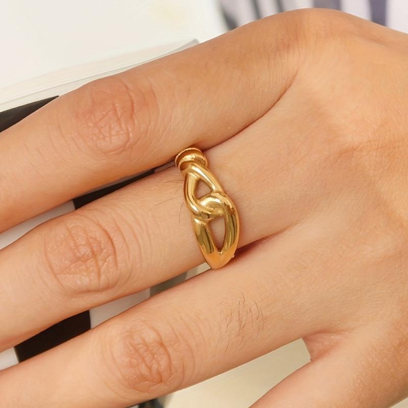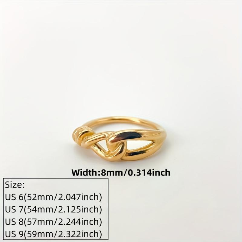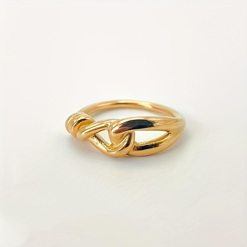 This stainless steel ring boasts a minimalist knot design with a polished golden finish, making it durable for everyday wear. It's a versatile gift for birthdays, anniversaries, and special occasions.