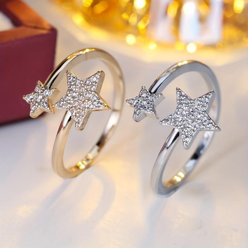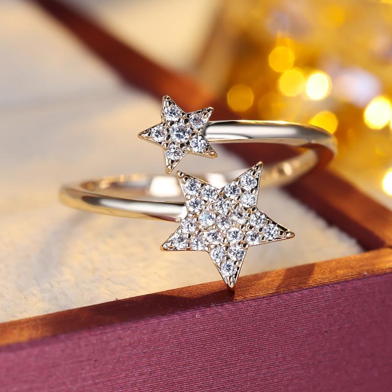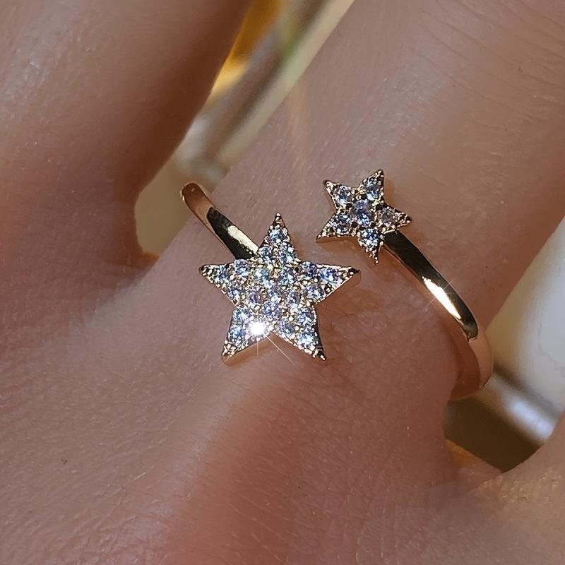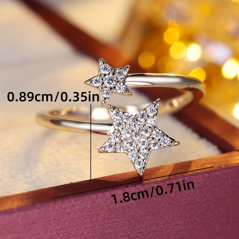This stunning open ring features sparkling cubic zirconia in a minimalist design. Made of copper with a golden tone finish, it's perfect for daily wear or gifting.