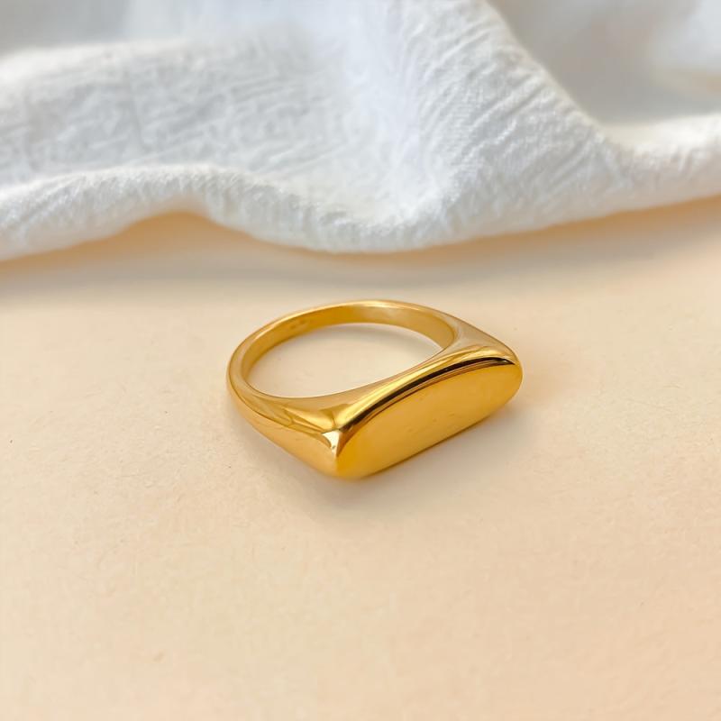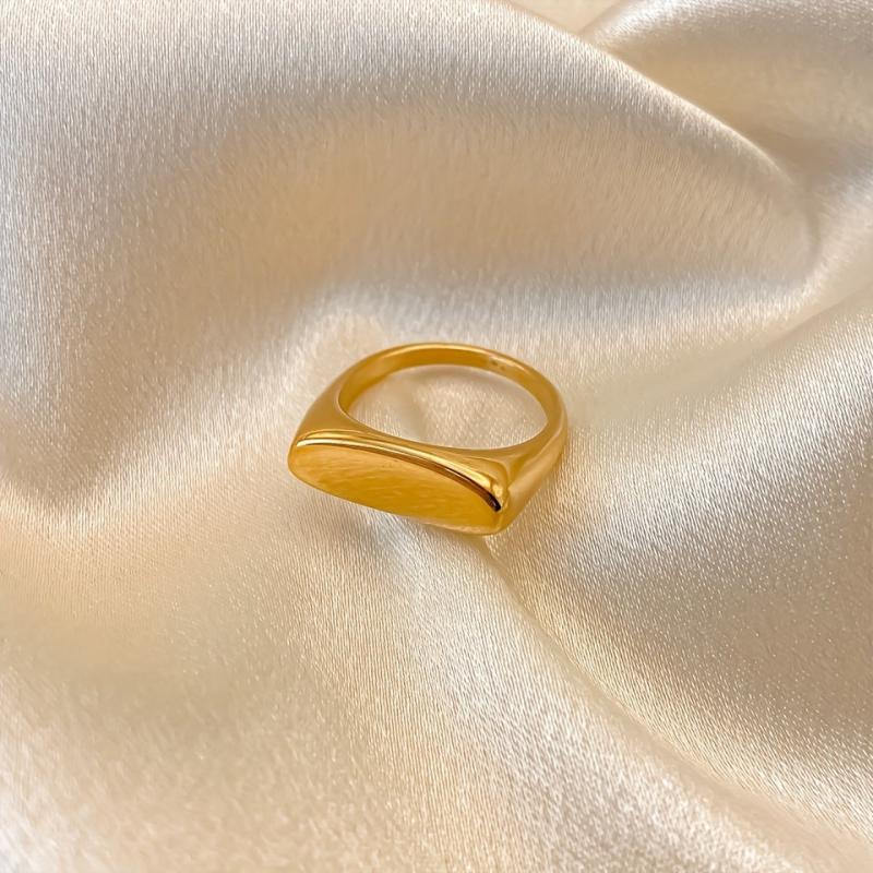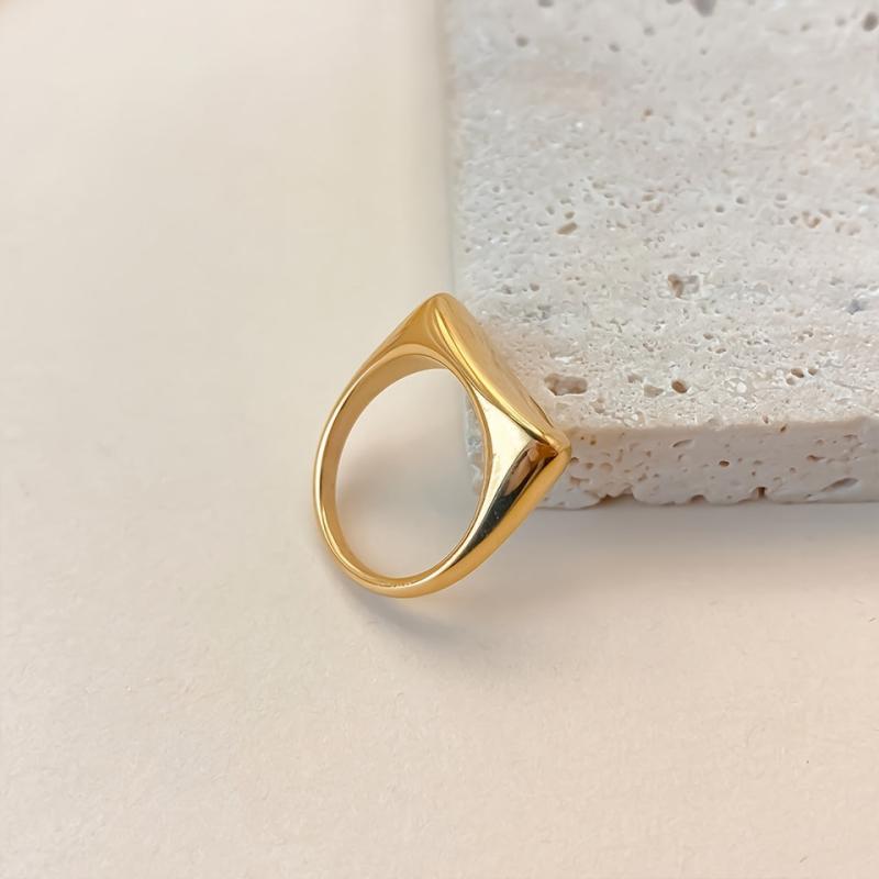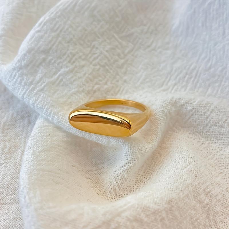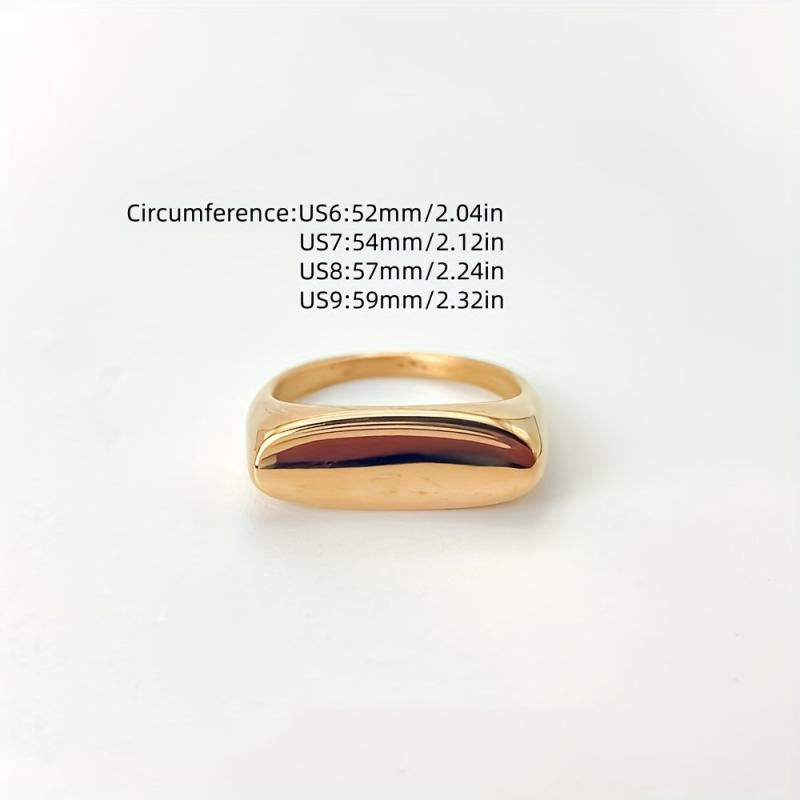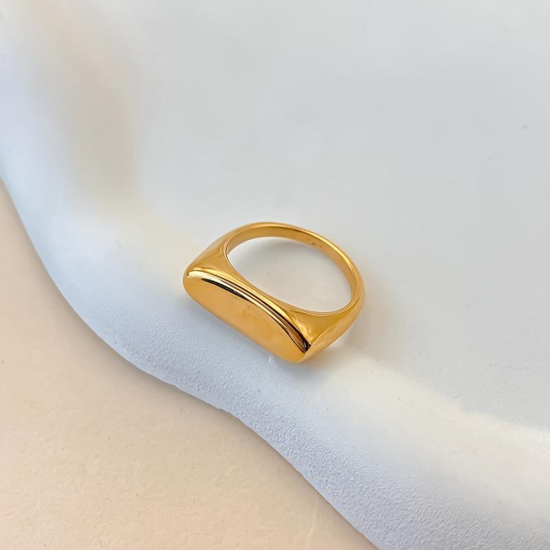 This sleek and modern rectangular ring is made of stainless steel with a polished golden finish. It is versatile for everyday wear and makes a perfect gift for her.
