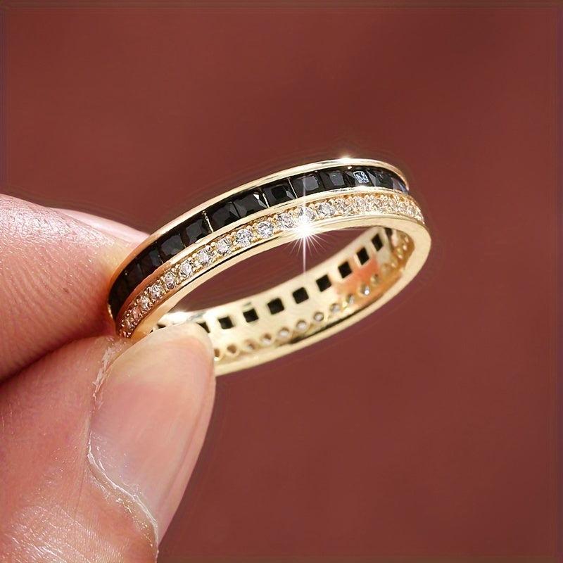 Elegant and modern square design ring featuring zirconia, perfect for a sophisticated look.