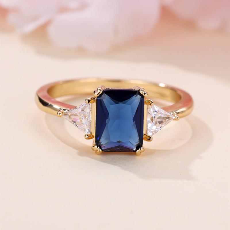 This geometric square zirconia wedding ring exudes a minimalist and elegant charm, perfect for weddings. The design showcases a modern and sophisticated look that complements any attire.