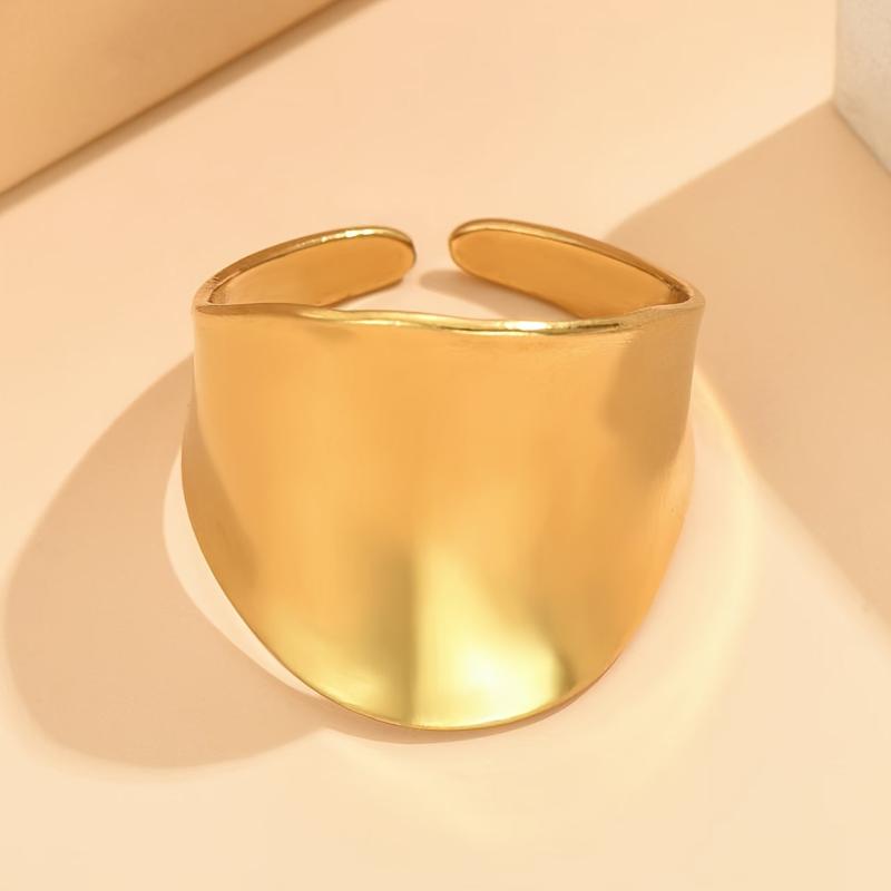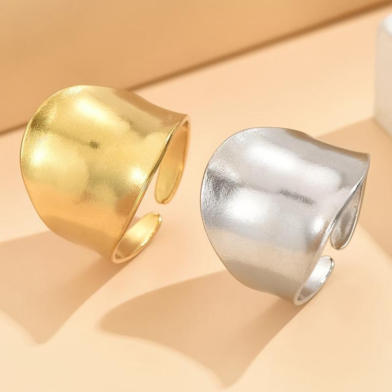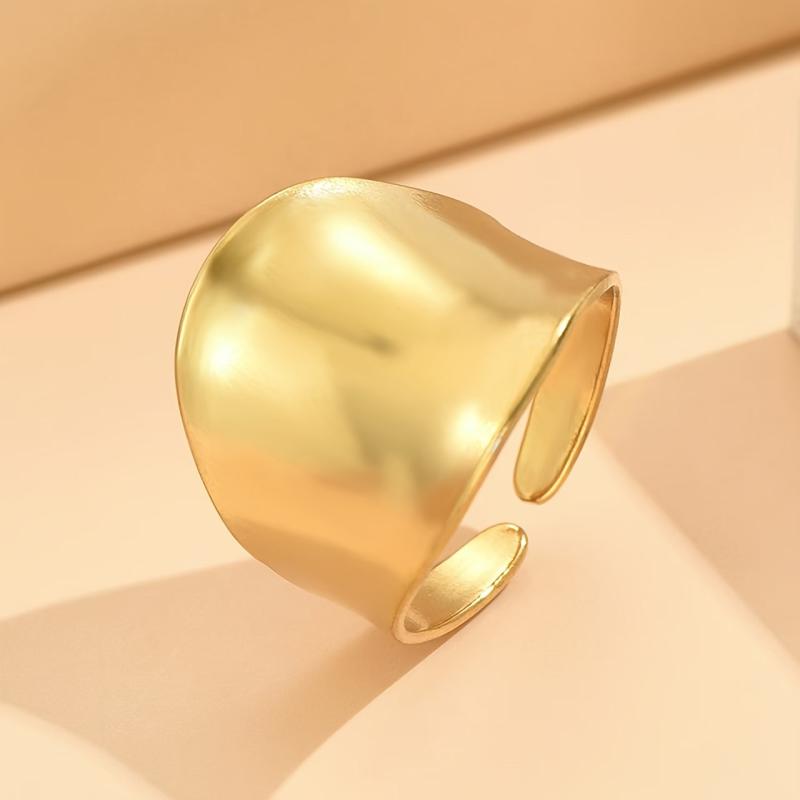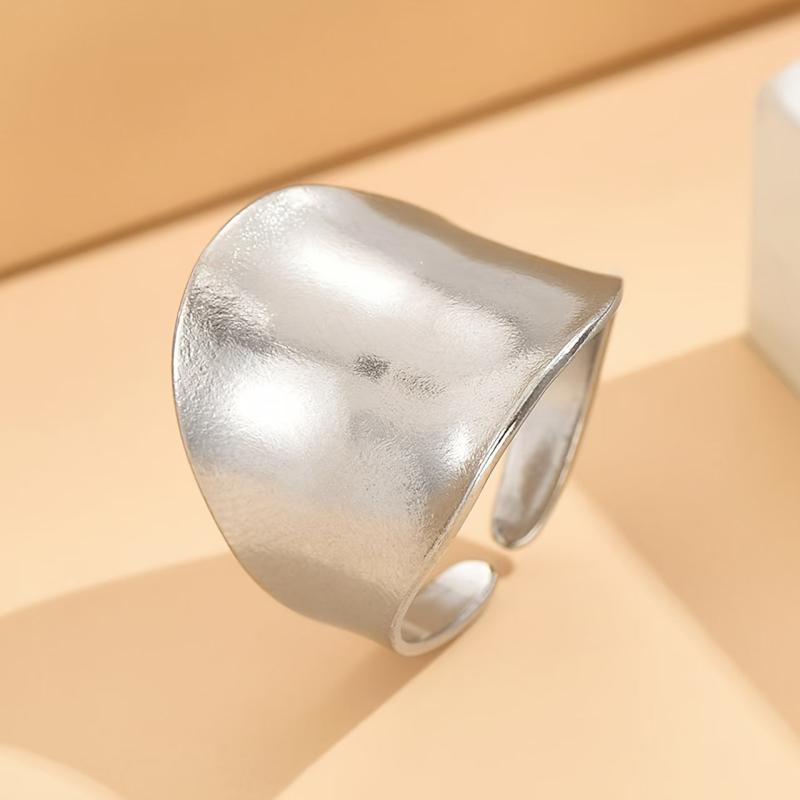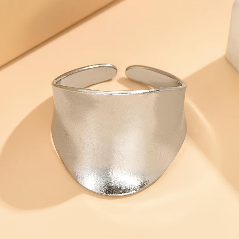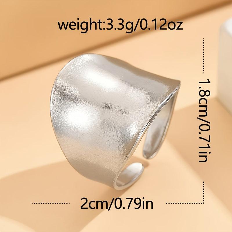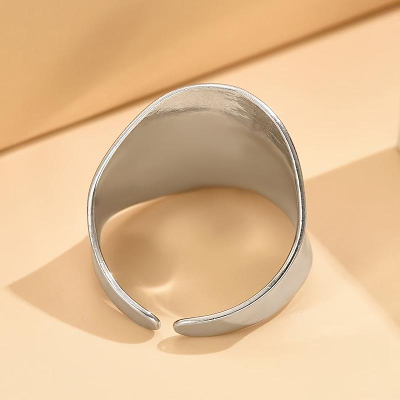 This stainless steel ring features a streamlined and fashionable design with slight press marks on individual rings due to the die casting process.