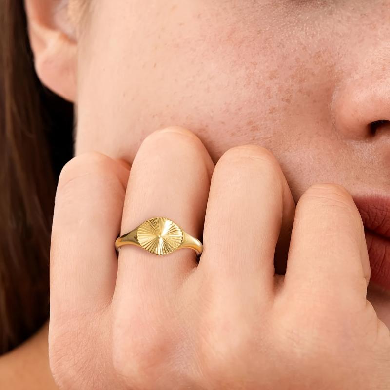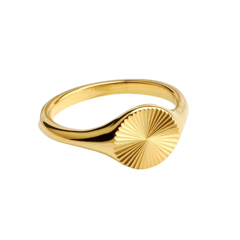 This minimalist stainless steel ring features a wave texture and a French classic golden tone. It is adjustable from size US5 to US8, making it perfect for everyday wear and a thoughtful jewelry gift.