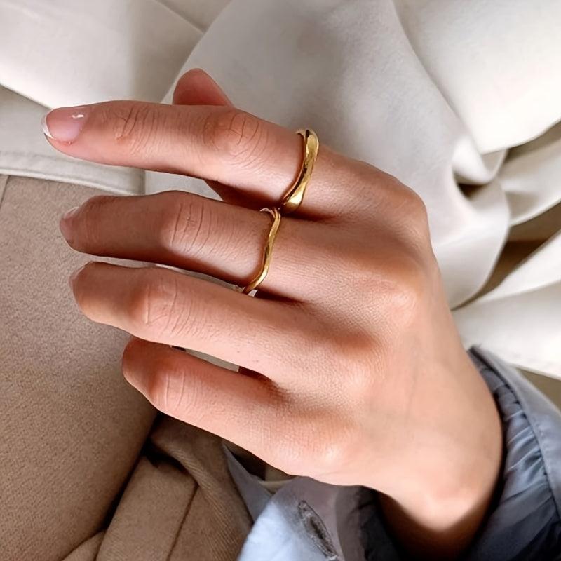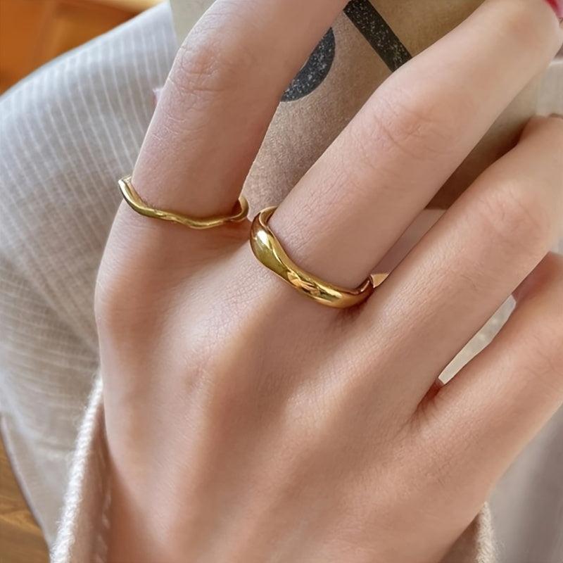 This stainless steel wave ring features a minimalist irregular design, making it a perfect gift for women.