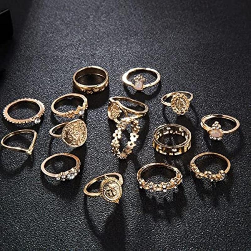Elevate your style with this contemporary set of 15 stackable rings. Mix and match to create unique combinations for any occasion.