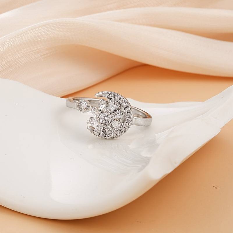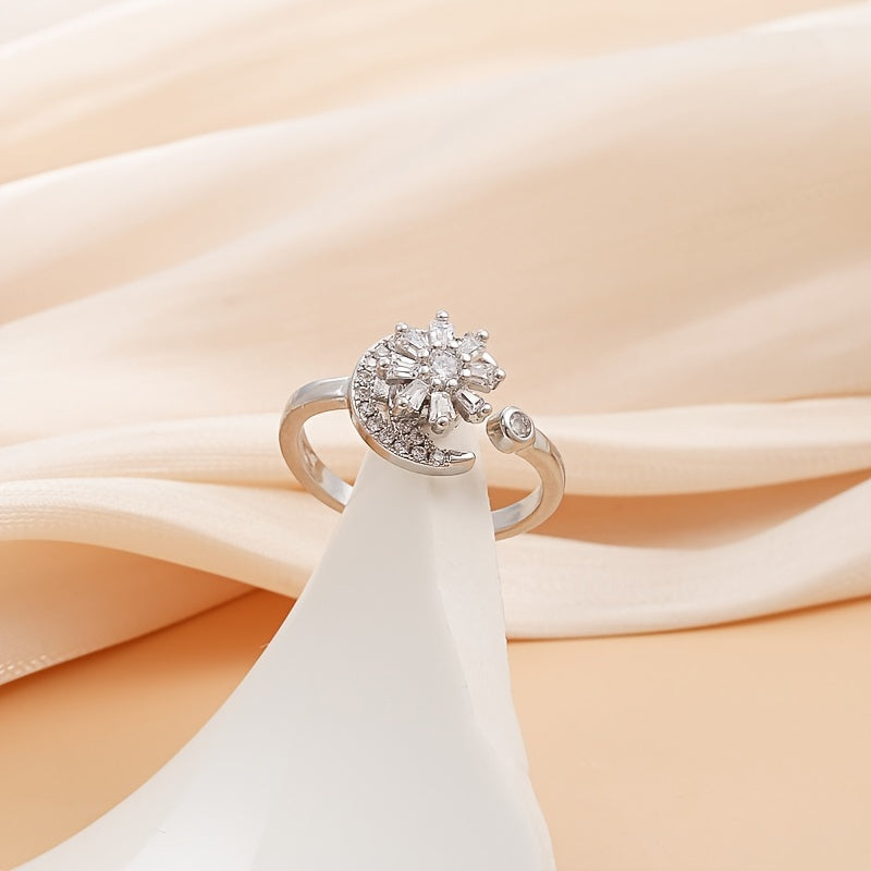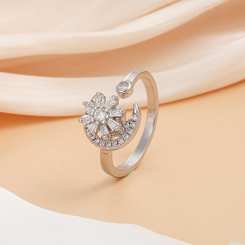 This rotating daisy moon crystal ring is designed to help reduce anxiety and stress. Adjustable size suitable for women and girls.