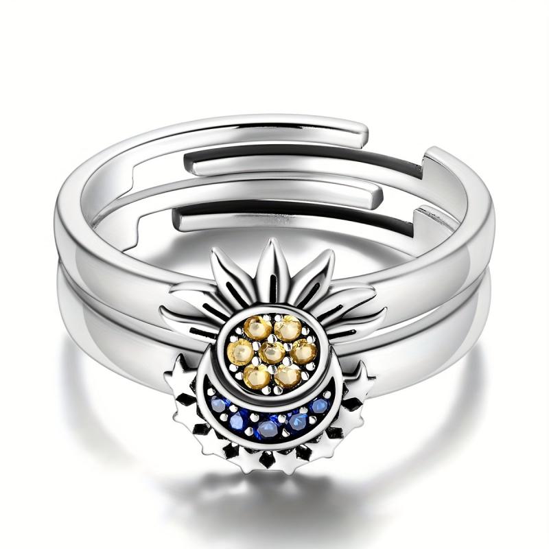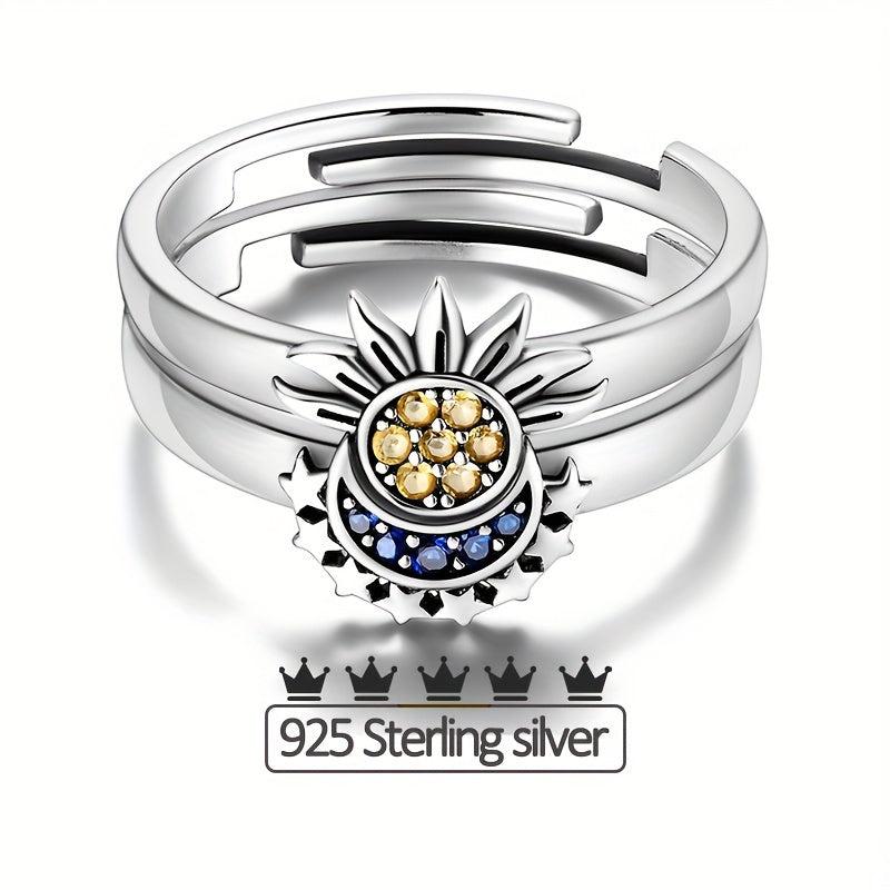 This beautiful ring features a moon and sun design with zirconia stones set in 925 sterling silver. It is hypoallergenic and perfect for everyday wear.