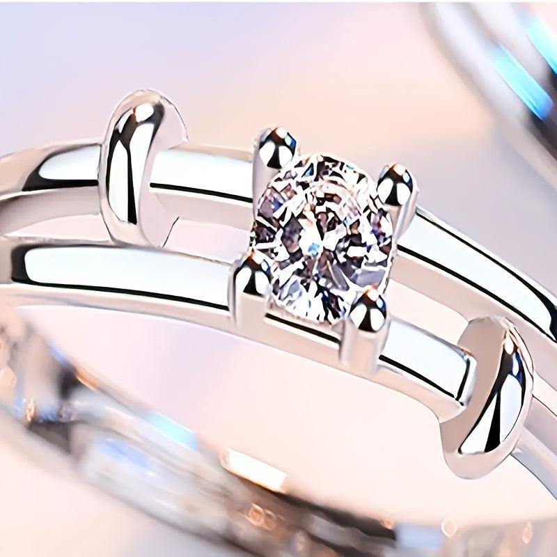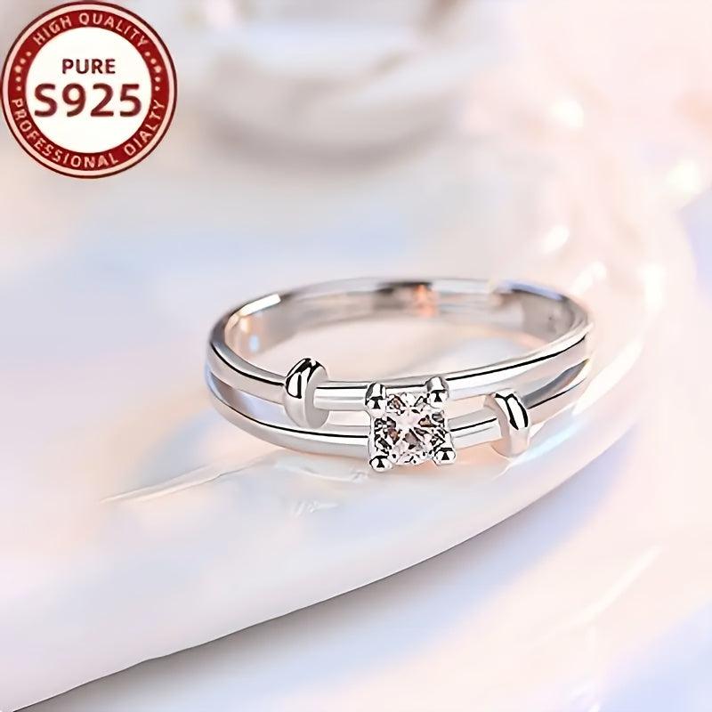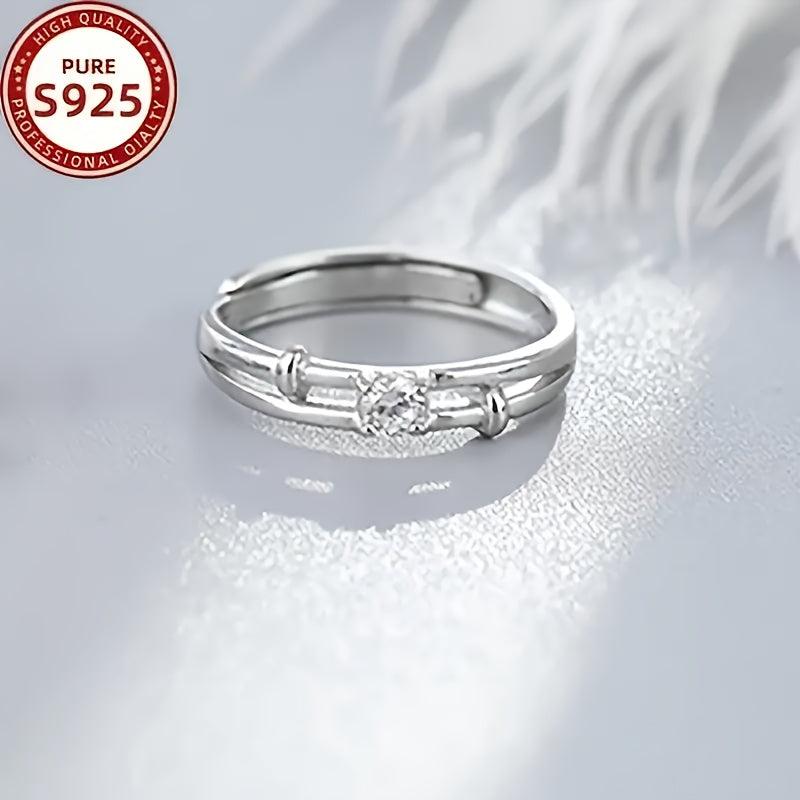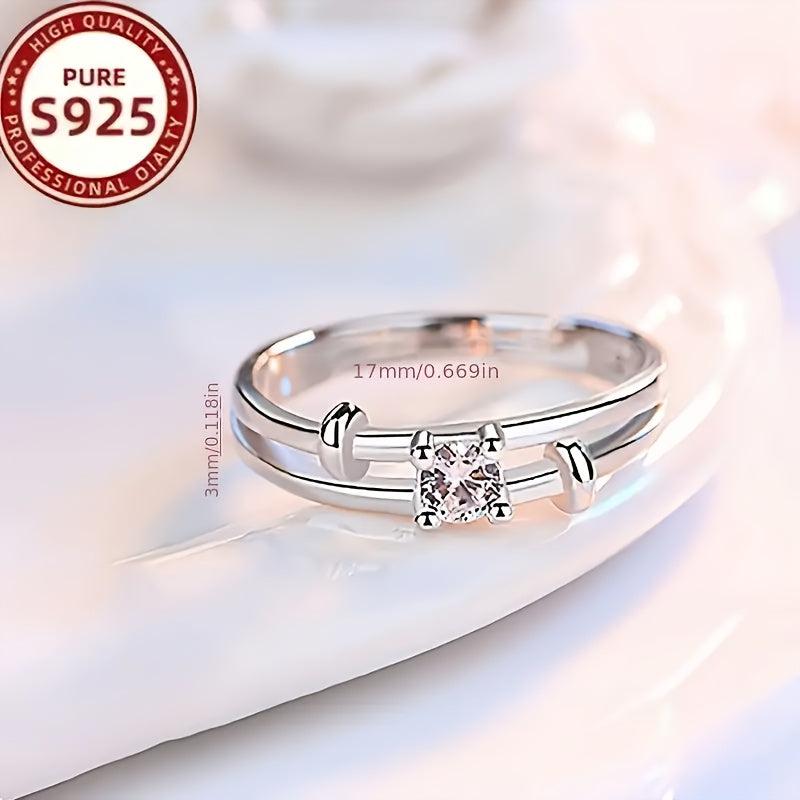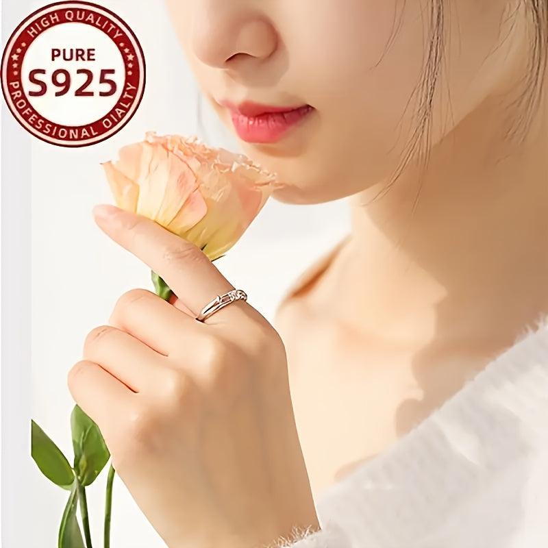 Elegant S925 pure silvery hollow open ring featuring a moonstone inlay, a perfect jewelry gift for women.