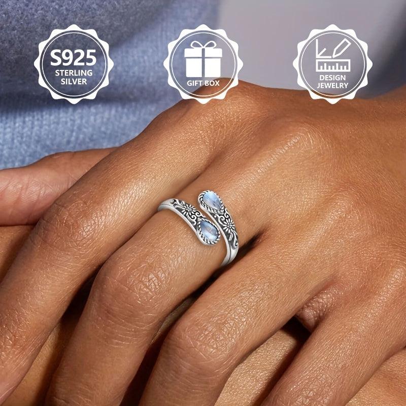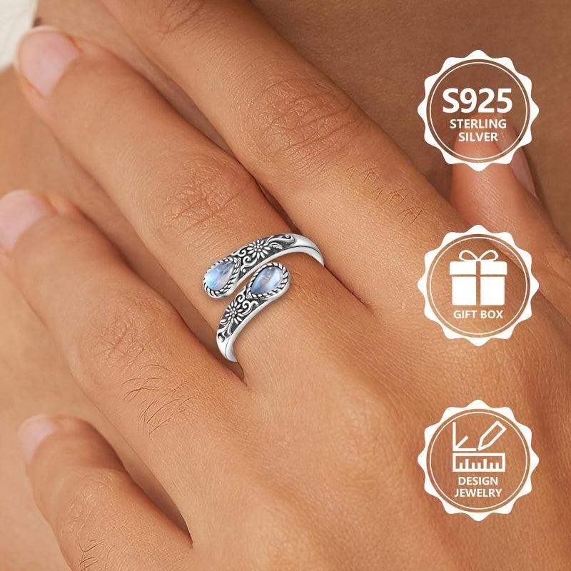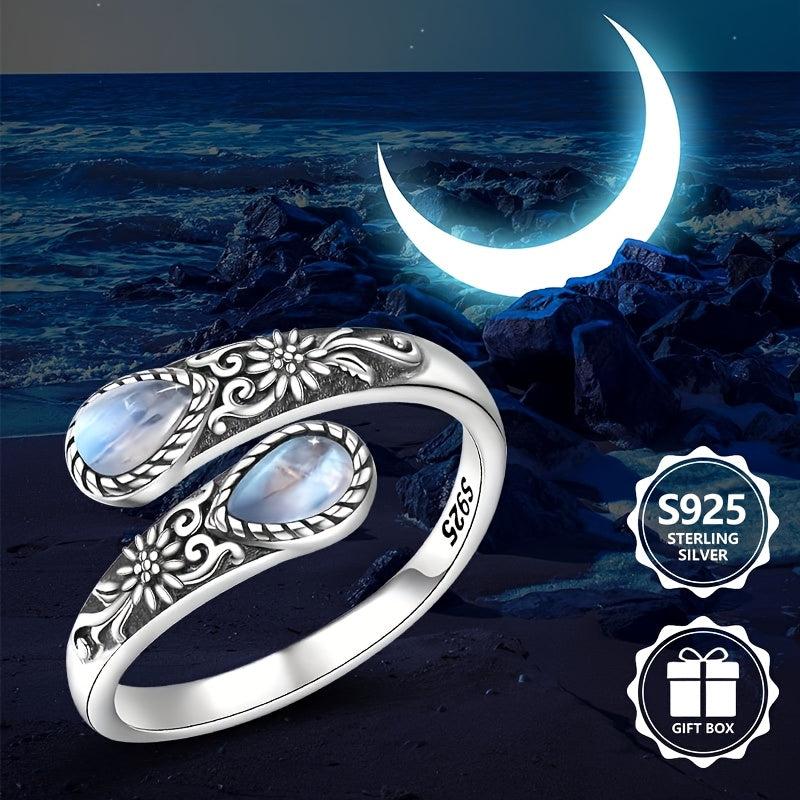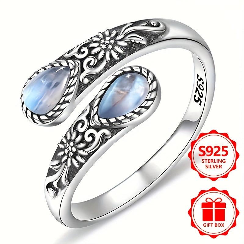 Elegant and stylish 925 sterling silver couple rings featuring a teardrop moonstone inlay. Perfect for holidays, vacations, gatherings, parties, and daily wear with a retro touch.