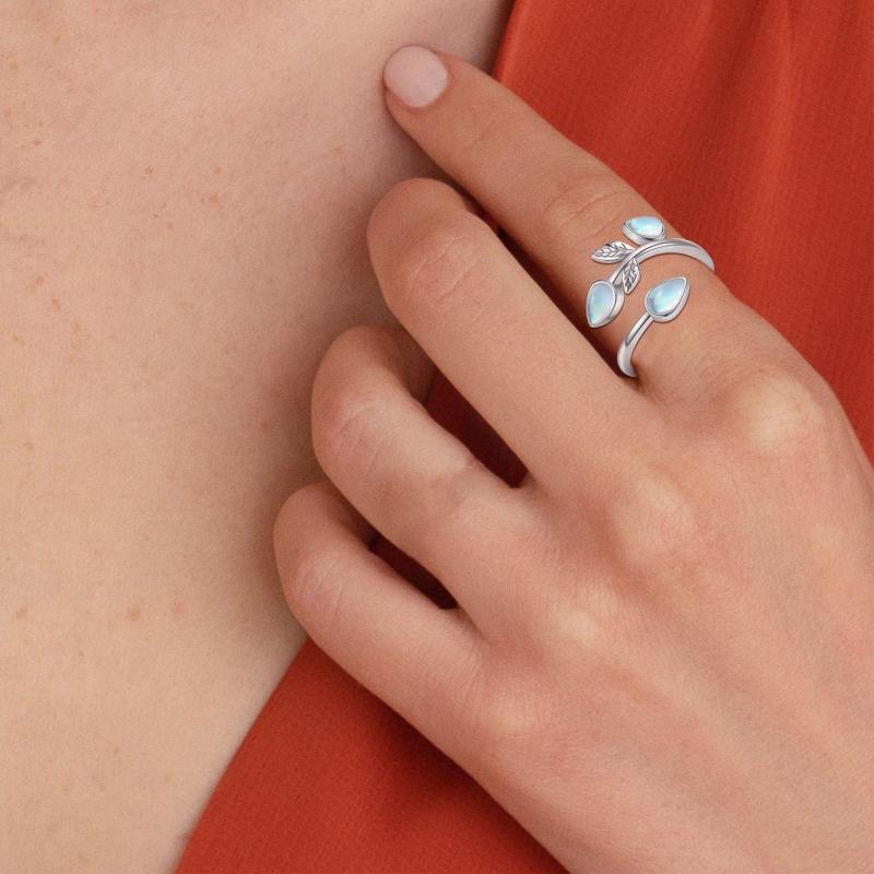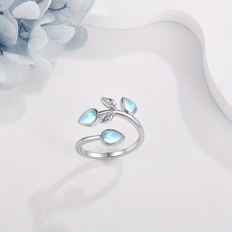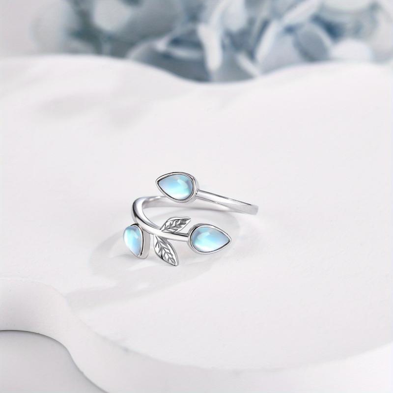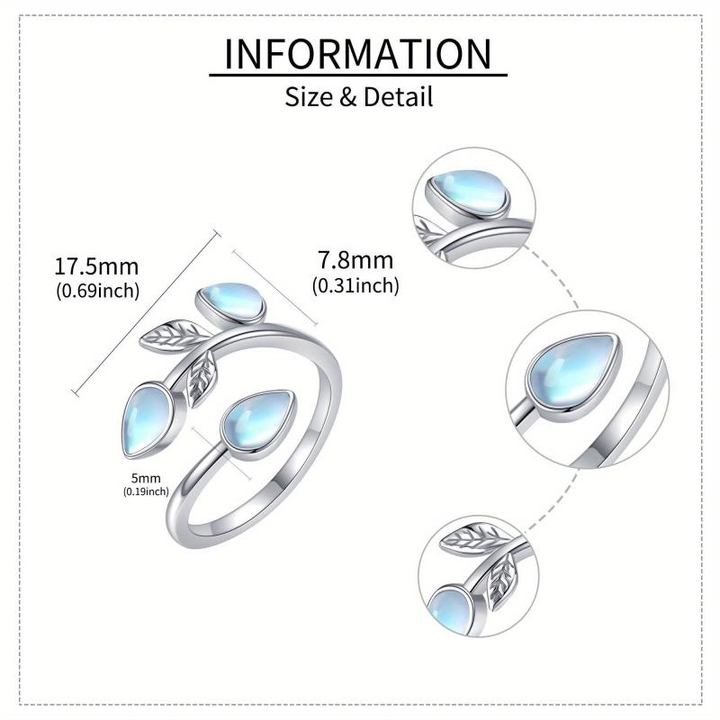 Add a touch of ethereal beauty to your look with this stunning Moonstone Leaf Ring. Crafted from sterling silver, this ring features a synthetic moonstone in a leaf design. The adjustable band ensures a comfortable fit for all sizes.