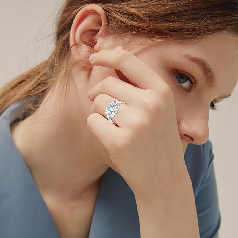 This elegant Lotus Ring is crafted from 925 Sterling Silver featuring a stunning Moonstone gemstone. Perfect for women who love flower-inspired jewelry.