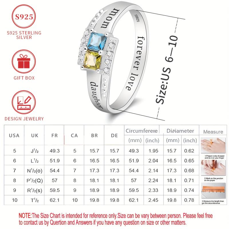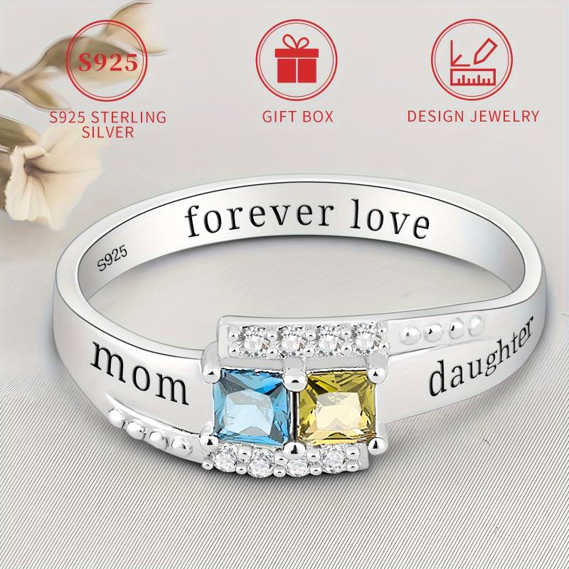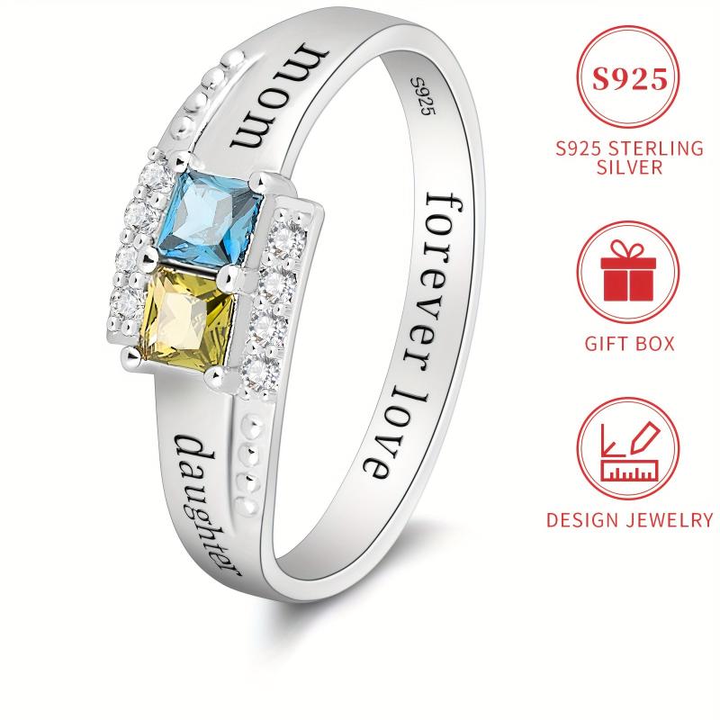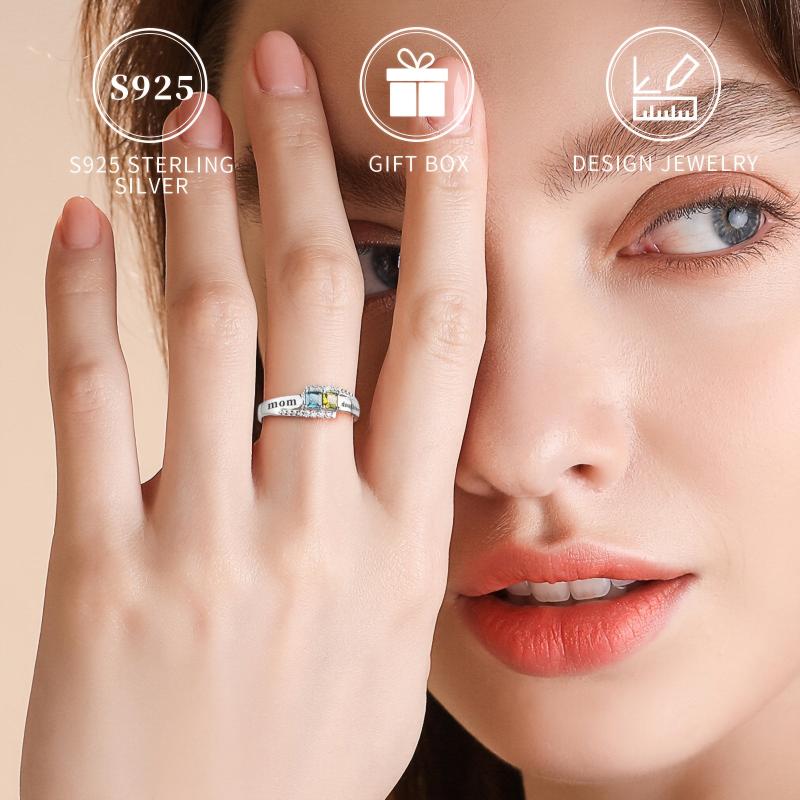 Express your gratitude and care with this elegant mother daughter ring made of pure S925 silver featuring sparkling zirconium stones. A stylish and meaningful fashion accessory.