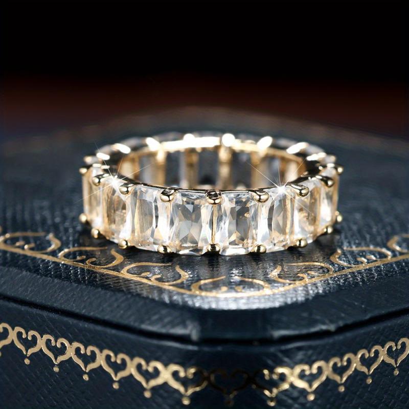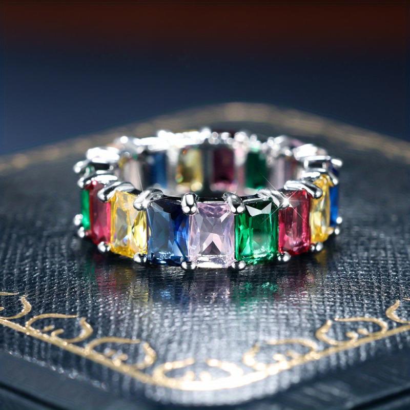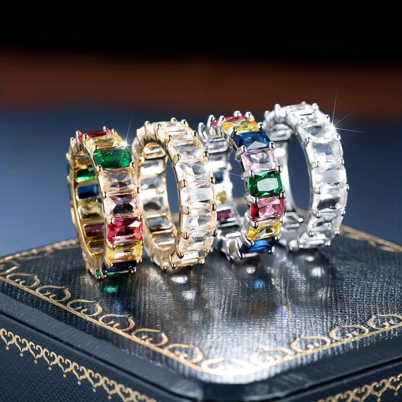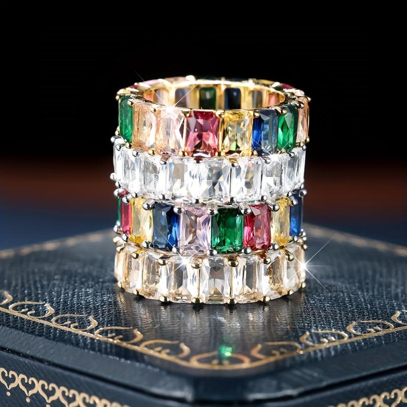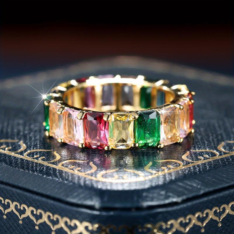 This stunning multicolor cubic zirconia wide band ring is the perfect accessory for weddings, banquets, and all seasons. The golden tone adds a touch of elegance to any outfit.