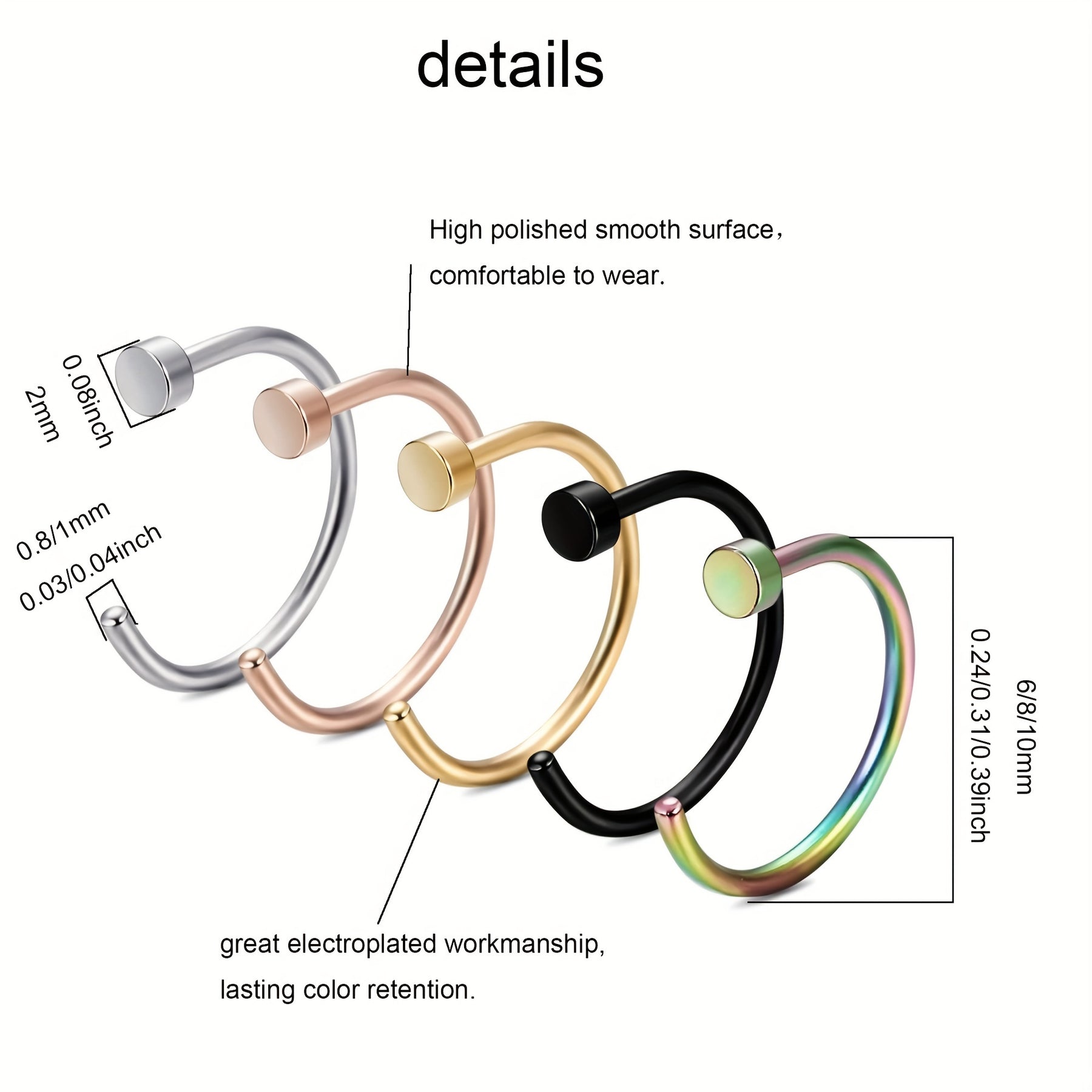 Add a touch of style to your look with this multicolor stainless steel nose ring hoop. Made of durable stainless steel, it is suitable for everyday wear.