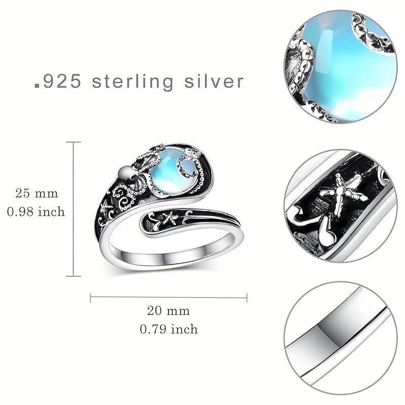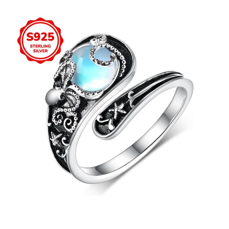Adorable octopus ring featuring moonstone. This S925 pure silver retro open ring is hypoallergenic and perfect for daily wear.