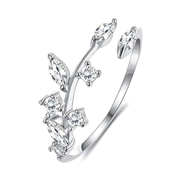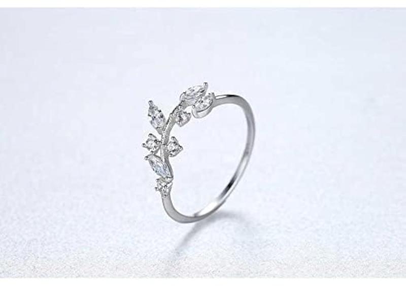 Elegant olive leaf design with zirconia pave setting, perfect gift for wife's birthday.