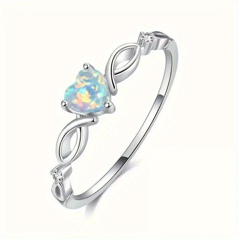 This opal heart ring in silvery tone is perfect for weddings, parties, and special occasions. It makes an ideal gift for birthdays and more.