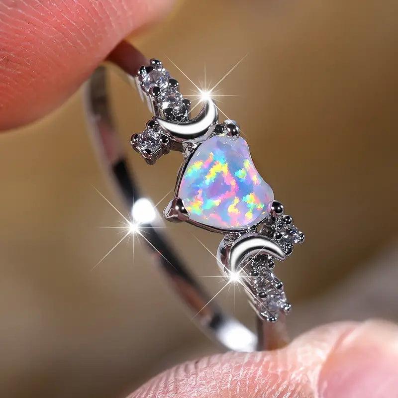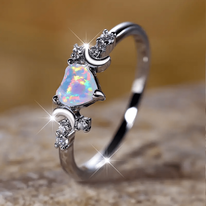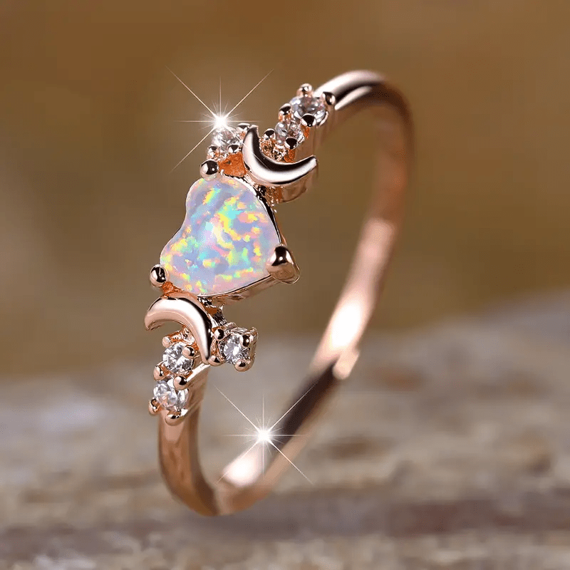 This stunning Opal Heart Ring features synthetic Cubic Zirconia accents that add a touch of sparkle. Perfect for weddings, parties, or as a Valentine's gift. Crafted from high-quality copper.