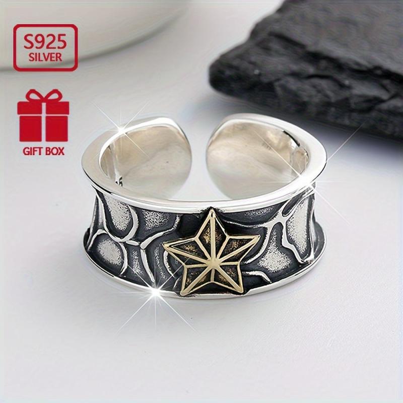 This open ring features a retro ripple design crafted from S925 sterling silver with a copper star element. Perfect for parties and suitable for both men and women.