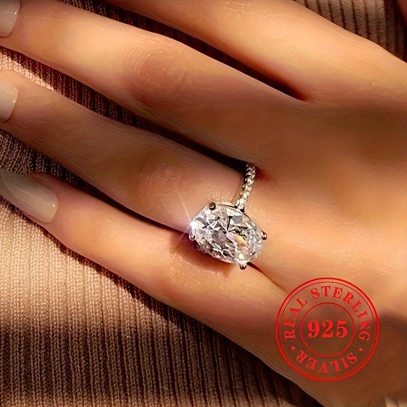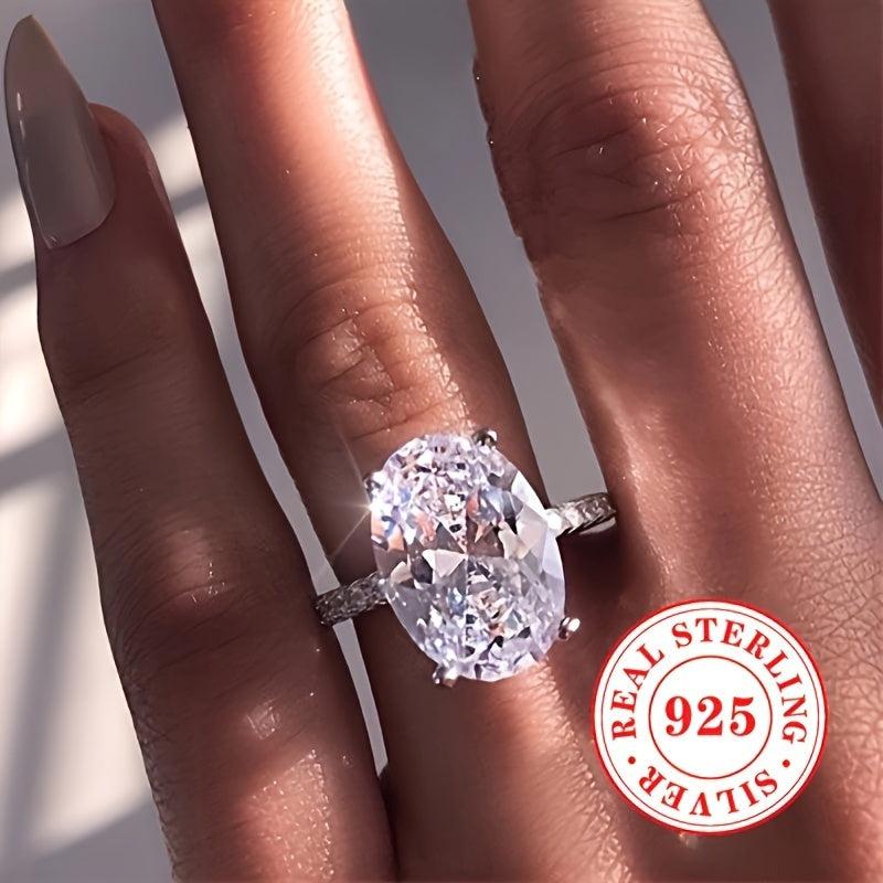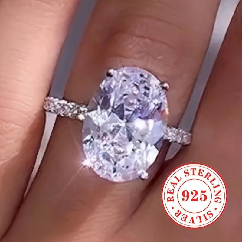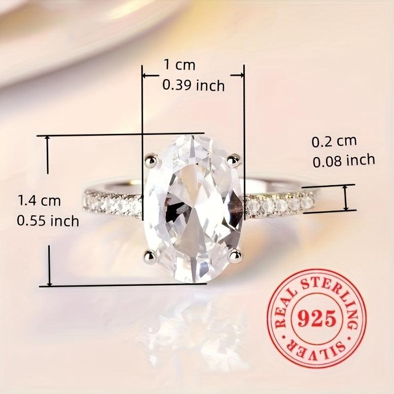Oval Cut Zirconia Engagement Ring S925 Silvery Bridal Wedding Jewelry