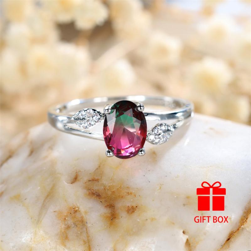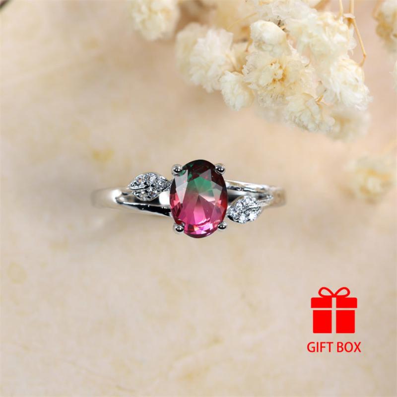 This durable and sparkling oval ring features rose red and green cubic zirconia set in copper. Perfect for weddings, parties, and everyday glamour.